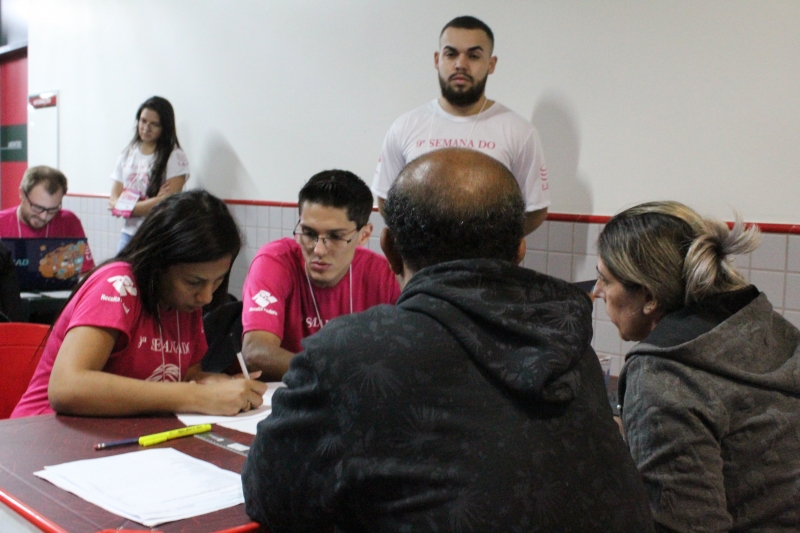 Os acadêmicos do 5º e 7º períodos, com supervisão dos professores e coordenadora, fazem o papel de mesário, atendendo diretamente o declarante. Já os acadêmicos do 1º e 3º períodos auxiliam na triagem, espaço kids e outros suportes. "Por ser só o primeiro dia, a experiência está sendo muito bacana. Queremos bater as 500 declarações. Essa experiência está contando muito, é um contato real do que vamos vivenciar no nosso dia a dia como profissionais", manifesta o acadêmico do 5º período, Flávio Murilo Tognato.