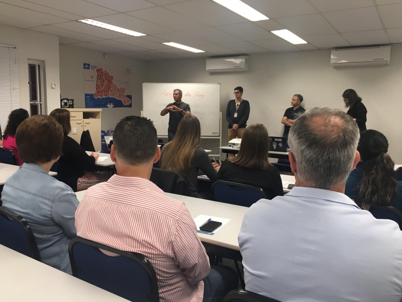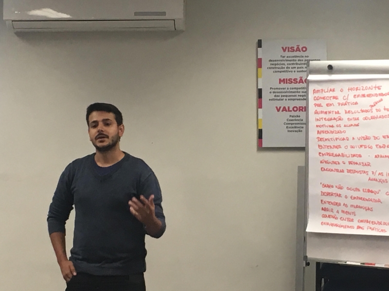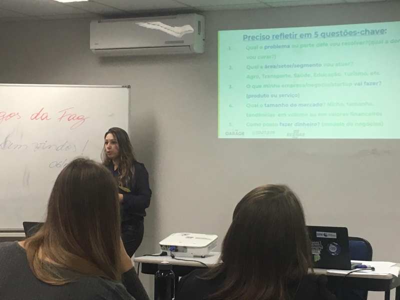 Os consultores do SEBRAE, Osvaldo Brotto e Gabriel Caus, e a Coordenadora do Programa Educação Empreendedora na Regional Oeste, Nara Pick, apresentaram aos docentes quais são as tendências do mercado, com o que um empreendedor deve se preocupar e quais devem ser as estratégias para a proposição de um produto no mercado. O conteúdo serviu para que os professores estejam aptos a orientar trabalhos dos alunos que queiram propor novos negócios. "O Startup Garage [realizado pelo SEBRAE no Centro FAG] nos abriu os olhos para outras possibilidades. Percebemos que estávamos encaminhando nossos alunos apenas para a abordagem científica, pesquisa e não acolhíamos as ideias empreendedoras. A parceira com o SEBRAE nos mostrou que é totalmente possível proporcionar isso. Portanto, a ideia é institucionalizar a proposta, com a possibilidade de o aluno propor projetos de negócios no TCC", detalha o Vice-reitor, Sérgio De Angelis.
