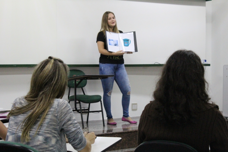Acadêmicas do 5º período do curso de Fonoaudiologia do Centro FAG apresentaram, em forma de oficina, um "Álbum Fonoartticulatório". A atividade foi orientada e conduzida pela professora e coordenadora do curso, Jenane Topanotti.
