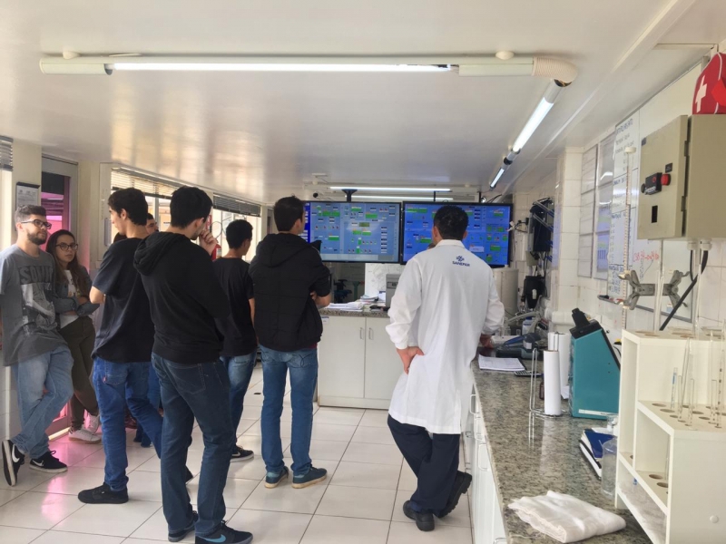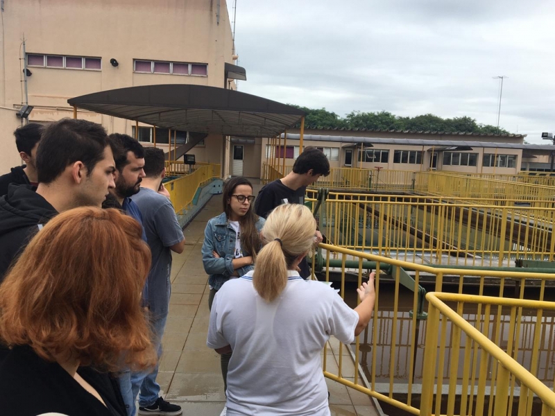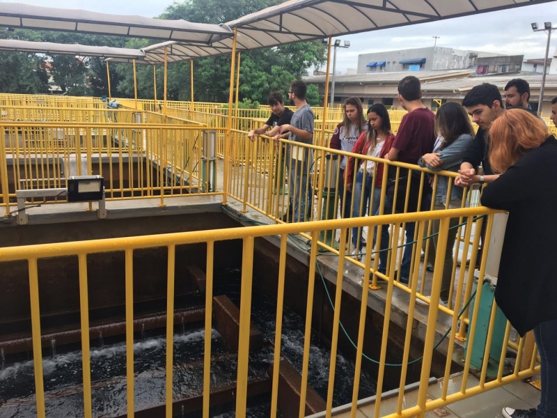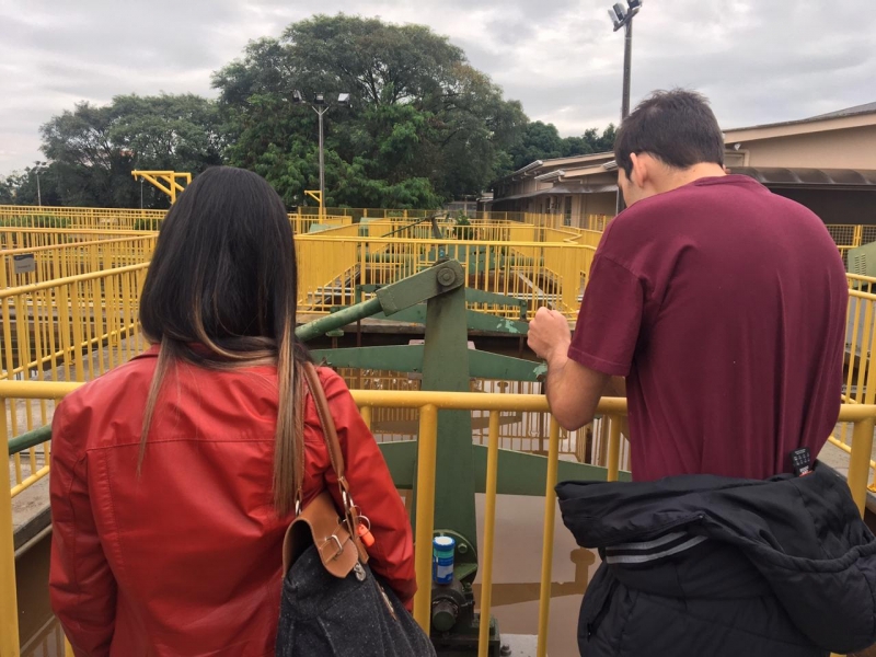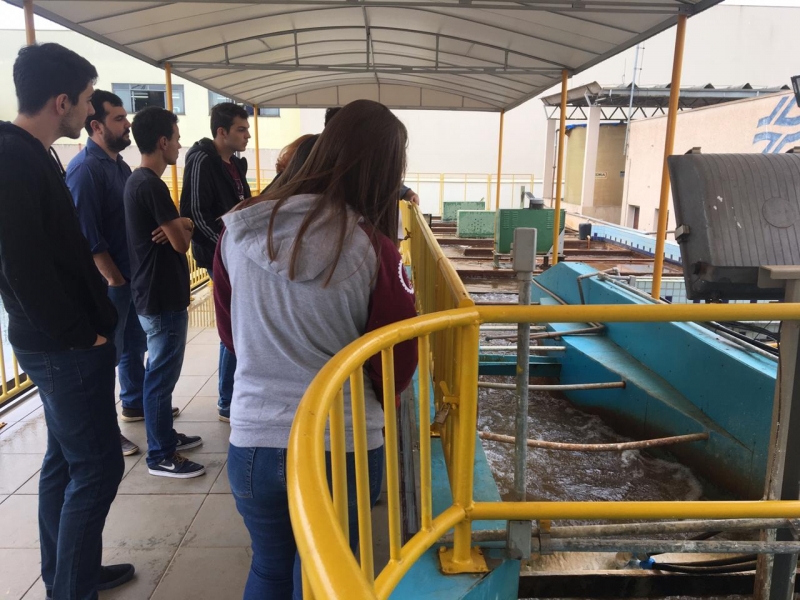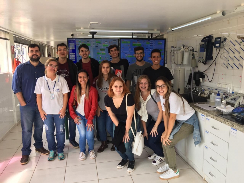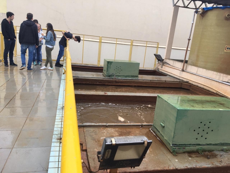 Os acadêmicos conferiram a dosagem e aplicação de coagulante na água, o decantador para sedimentação de partículas em suspensão, o processo de filtração através de areia e carvão e a logística de desinfecção da água. Além disso, visitaram todo sistema de controle dos reservatórios e o controle de qualidade da água, realizado no laboratório de água da empresa.