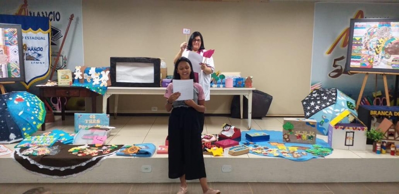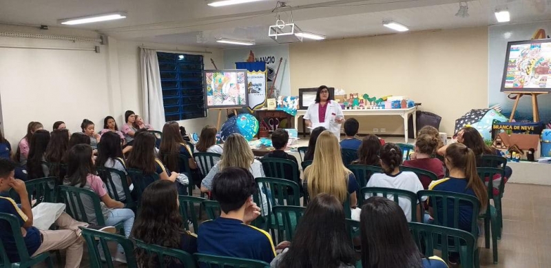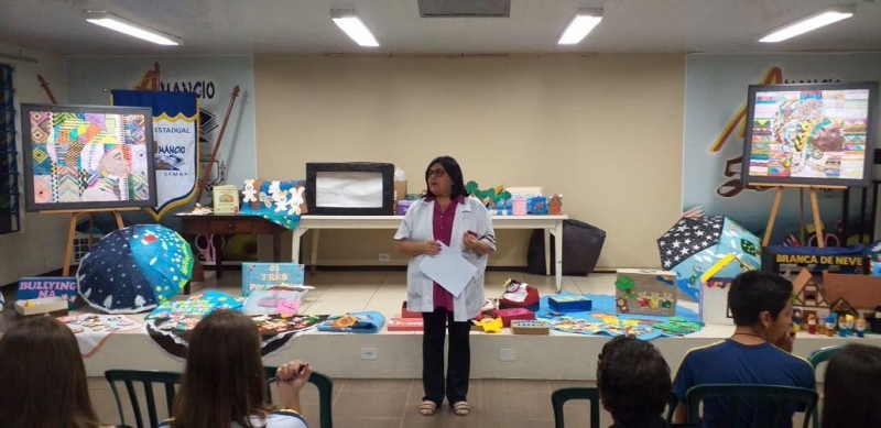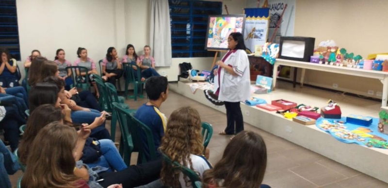 A professora, Silvia Cavalheiro, e o Coordenador dos colegiados de Pedagogia e Letras do Centro Universitário FAG, Paulo Fachin, estiveram no Colégio Estadual Amâncio Moro, em Corbélia, onde ministraram oficinas sobre Literatura Infantil, Contação de Histórias e Produção de Material Didático.
