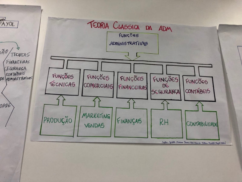 "O mapa conceitual é um diagrama ou ferramenta gráfica que representa visualmente as relações entre conceitos e ideias. O objetivo do mapa contratual é conectar ideias em um determinado espaço para solidificar seu conhecimento, bem como, esclarecer quais áreas precisam de um pouco de estudo. Neste caso, o mapa conceitual foi utilizado para organizar e estruturar o conteúdo das teorias da administração para melhorar a aprendizagem e, principalmente, relacionar os conteúdos das primeiras teorias com o modo como as organizações de hoje trabalham", explica a professora.