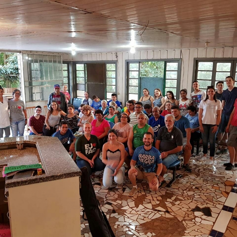 Os acadêmicos e colegiado arrecadaram itens de higiene pessoal, de limpeza, doces e chocolates e entregaram aos moradores em recuperação que dependem de ações voluntárias