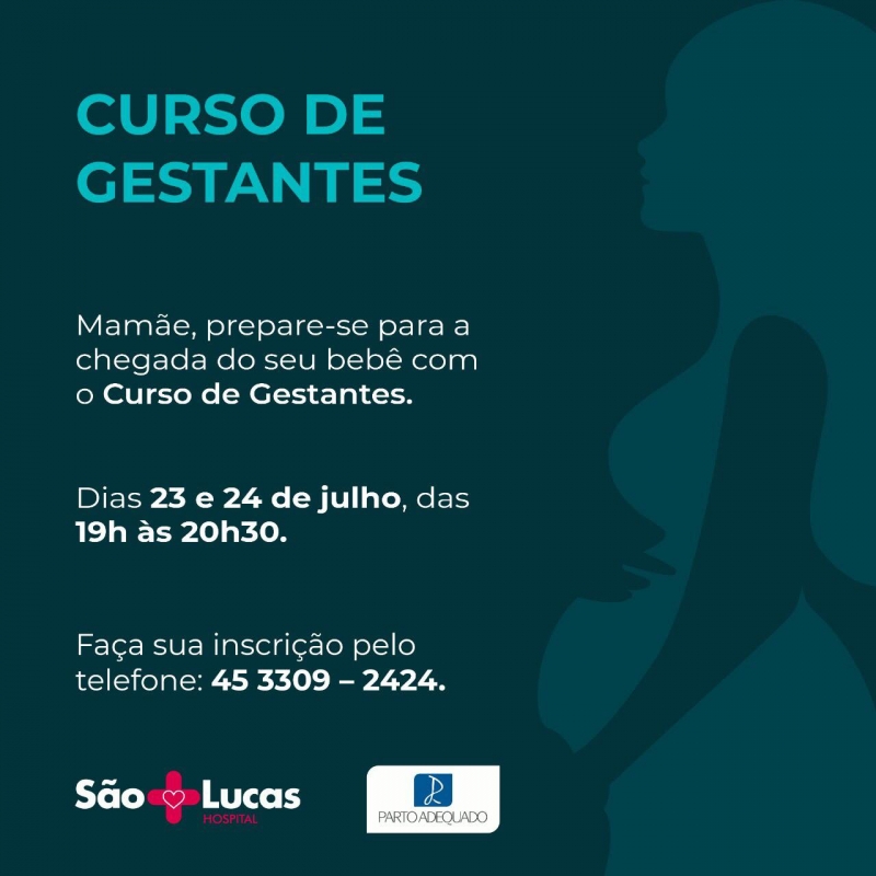 Para preparar as mamães para a chegada do bebê, a Fundação Hospitalar São Lucas preparou um curso de gestantes com aulas práticas e teóricas. Na oportunidade, a equipe tirará dúvidas sobre o trabalho de parto, ensinará cuidados e ajudará a fortalecer o vínculo entre pais e filhos. A atividade contará com o apoio de pediatras, obstetras, enfermeiros, fisioterapeutas e fonoaudiólogos.
