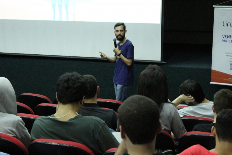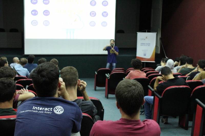 Acadêmicos dos cursos de Sistemas de Informação e Engenharia de Software participaram de uma palestra com representantes da Linx Software. Lilian Perez e Mauricio mostram aos alunos as diferentes atividades realizadas dentro da empresa. O encontro faz parte de um ciclo de palestras que está sendo realizado durante o semestre com as principais empresas de desenvolvimento de software de Cascavel. A atividade está sendo organizada pelo professor Thyago Alexander, na disciplina de Introdução a Engenharia de Software. O acadêmico de Engenharia de Software, Jeferson Eduardo Guido, participou de todas palestras e relata sobre o contato com profissionais de outras empresas. "Estou gostando muito desses encontros. É muito importante ter esse contato, principalmente pra quem da turma ainda não teve com empresas de software", conta.