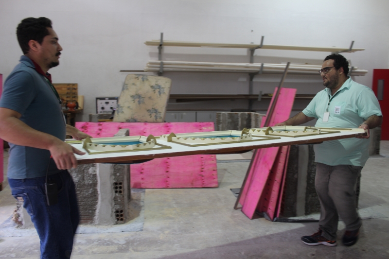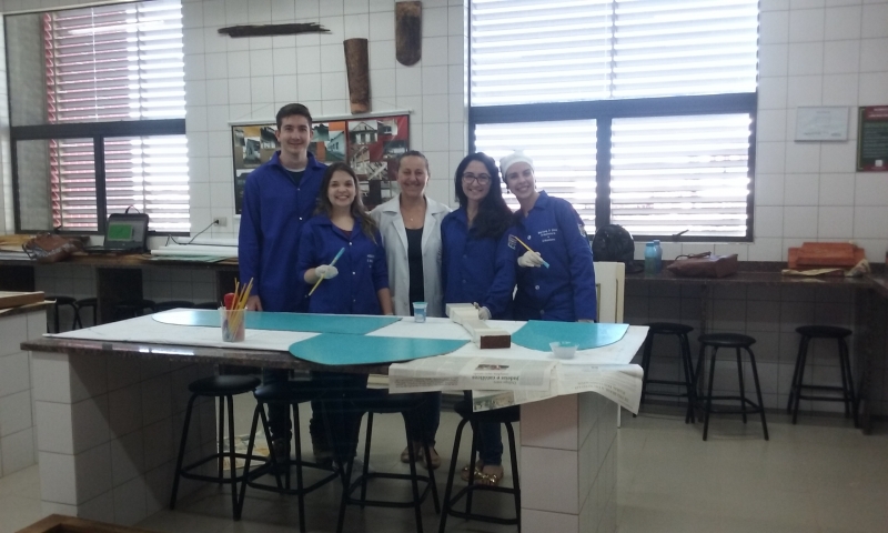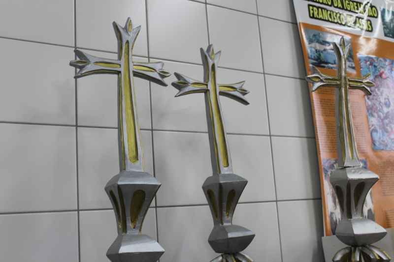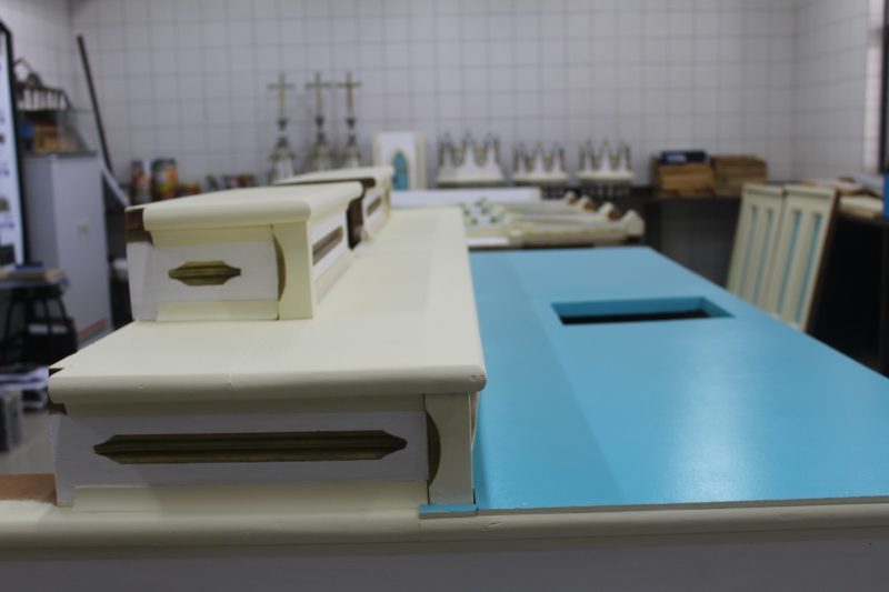 Os alunos colocaram a mão na massa, com lixamento, enxerto e pintura do altar, tudo para que o passado e o presente pudessem se encontrar na obra