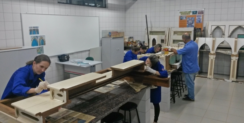 A ação de restauro vai além de colocar em melhor estado ou fazer reparos, deve proporcionar um novo início, um "começar mais uma vez" para o edifício ou peça a ser restaurado. E é esse processo que vem sendo realizado no Laboratório de Técnicas Retrospectivas, através de um projeto que envolve levantamentos, pesquisas e planejamento. "Tudo começa com o levantamento histórico, com a declaração de significância do bem, que é um documento que visa alertar para a importância do bem patrimonial em seu contexto histórico, artístico e cultural. Busca apontar diante do levantamento de informações documentais, relatos orais e imagens a trajetória pela qual o bem passou e que revelam seu valor intrínseco e a permanência de sua autenticidade. Funciona como uma justificativa do valor do objeto para a história e cultura local o que reforça a necessidade de sua proteção e conservação", explica a professora.