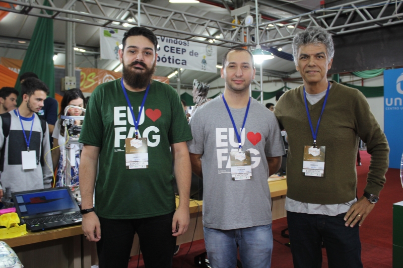 Estão no estande os cursos de: Engenharia de Controle e Automação, Engenharia Elétrica, Engenharia Mecânica, Engenharia Civil e Engenharia de Software. Os cursos de Controle e Automação e Elétrica apresentam uma impressora 3D da FAG, além de outras três produzidas a partir desta pelos próprios alunos. "Também trouxemos uma pista de carrinhos autônomos para demonstrar de que forma a eletrônica embarcada pode ser usada futuramente. Estão em exposição ainda experiências de realidade aumentada: temos QR's Codes, imitando livros em que você tem o texto e a pessoa pode lê-lo virtualmente", explica o professor e Coordenador Adjunto dos cursos, Helder Carozzi. Os cursos também colocaram à disposição do público um braço robótico, que pode ser controlado por joystick e um motor elétrico de alta tecnologia. "Para nós, é muito gratificante, porque podemos passar à comunidade os novos conceitos de tecnologia que a FAG está desenvolvendo. O interessante é que conseguimos passar os diferentes aspectos das Engenharias", relata a acadêmica de Engenharia Elétrica, Ana Moura.