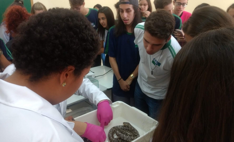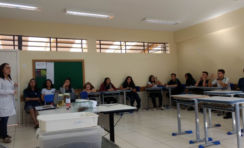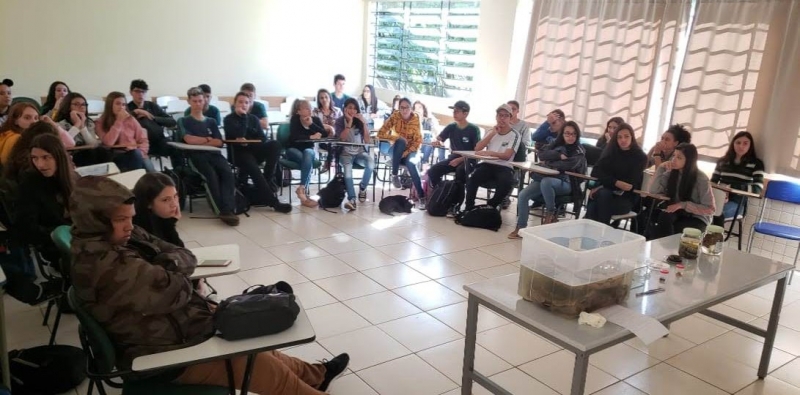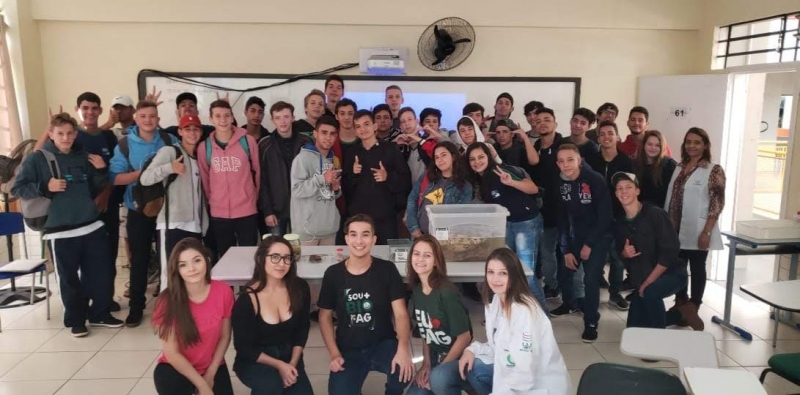 Acadêmicos do curso de Ciências Biológicas do Centro Universitário FAG, que estão participando do projeto Biologando, foram até o Colégio CEEP para falar sobre animais peçonhentos aos alunos de diversos cursos. A atividade foi desenvolvida pelas turmas do 1º e 3º períodos.