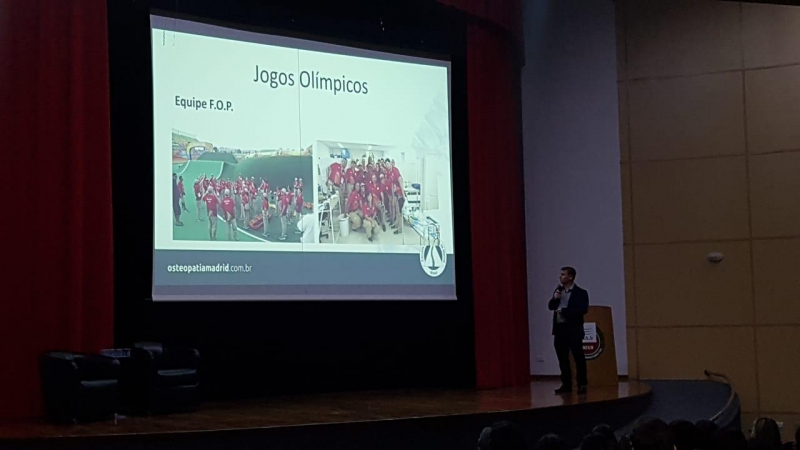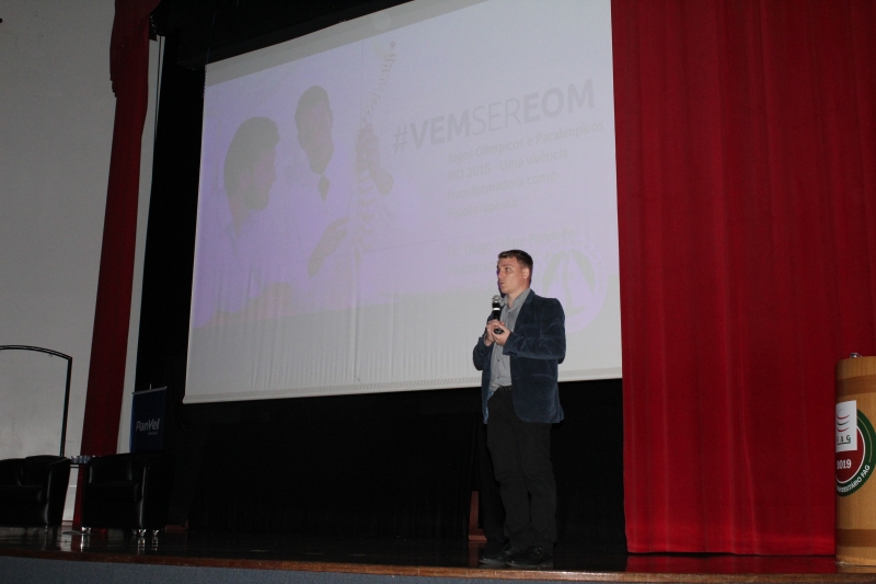 A primeira palestra foi voltada diretamente para os acadêmicos de Fisioterapia e ficou por conta do fisioterapeuta, Diego Felipe Pandolfo, que falou sobre suas experiências na Olimpíadas e Paraolimpíadas. "Passei um pouco da minha vivência nos Jogos Olímpicos E Paraolímpicos Rio 2016, onde trabalhei em algumas formas de atuação do fisioterapeuta, tanto na parte clínica quanto na parte de extricação - que é entender as quedas e os traumas -, e falei também dos deslocamentos de como que chegar lá e de estar dentro de um evento desses, que é um dos maiores do mundo", conta. Em seguida, no segundo horário, os acadêmicos de Estética e Cosmética se reuniram com os acadêmicos do curso de Fisioterapia e assistiram a palestra com o fisioterapeuta, André Pêgas de Oliveira, que trouxe o tema "O Fator de Sucesso".