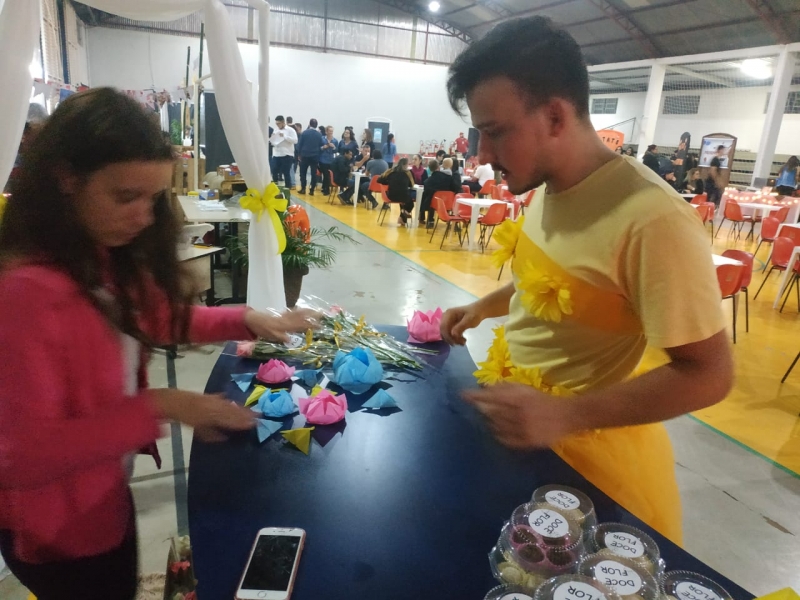 Os grupos se organizaram para apresentar produtos e serviços reais para os visitantes dos estandes