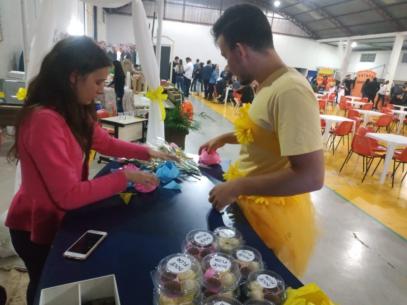 Os vários estandes de compuseram a 3ª Feira do Empreendedorismo da FAG Toledo ficaram lotados de convidados e clientes durante o evento realizado na noite desta quarta-feira (15) no ginásio de esportes da instituição. Os acadêmicos do núcleo comum dos cursos de Gestão trabalharam como profissionais para apresentar produtos e serviços em uma atividade que mistura a realidade do mercado com um projeto laboratório, dentro da universidade. "Nós nos surpreendemos com o empenho dos acadêmicos que compraram a ideia da feira. Na primeira edição alguns terceirizaram o trabalho e na segunda tivemos alguns contratempos e nesta edição o trabalho ficou incrível, foi pura superação. É a prática de resolver problemas com fornecedor, matéria prima, apresentação de produtos. É o aprender vivenciando realmente a rotina de um empreendimento", comenta o coordenador dos cursos de Gestão de Recursos Humanos e Processos Gerenciais Adroaldo Carniel.