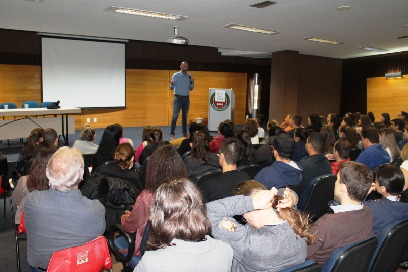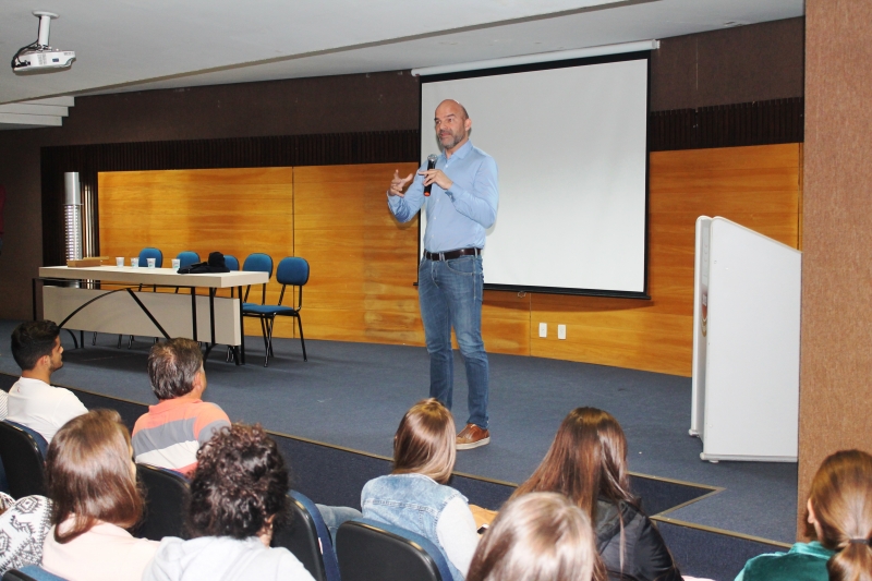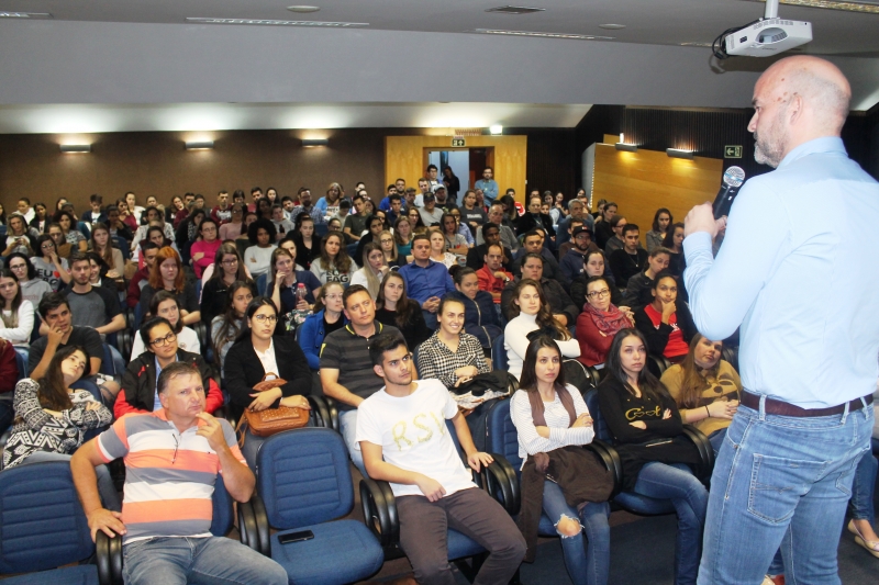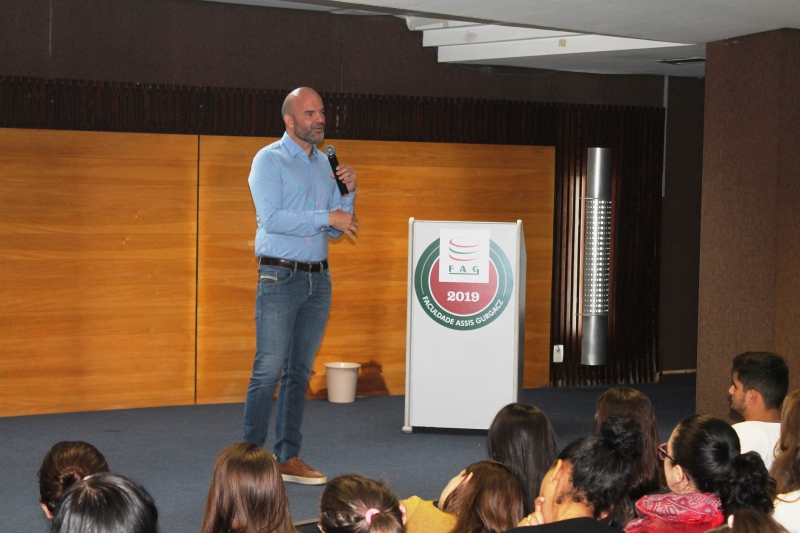 A palestra com Marcelo Almeida foi promovida pela direção da FAG Toledo e contou com a presença de acadêmicos e professores de todos os cursos da instituição.
