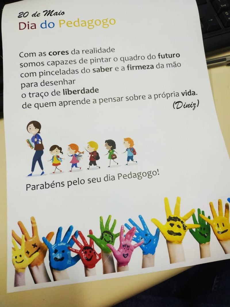 Na FAG Toledo o curso de Pedagogia é um dos mais antigos e também um dos mais procurados pelos calouros. A coordenadora do curso Dora Diniz divulgou nesta segunda-feira (20) um cartaz para homenagear estudantes e professores do colegiado. "Com as cores da realidade, somos capazes de pintar o quadro do futuro com pinceladas de saber e a firmeza da mão para desenhar o traço de liberdade de quem aprende a pensa sobre a própria vida", diz a mensagem escrita pela docente.