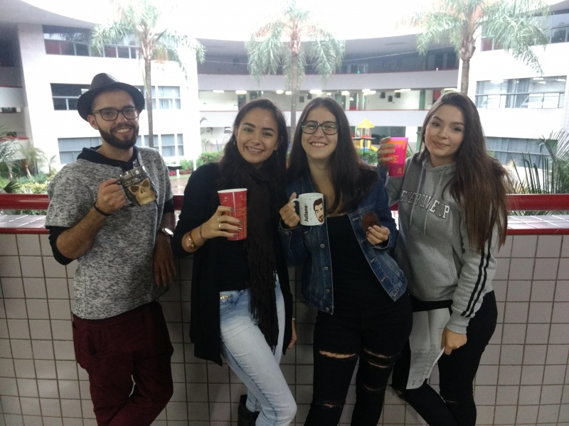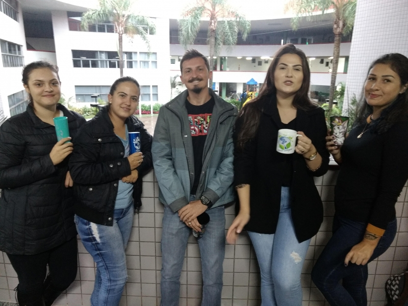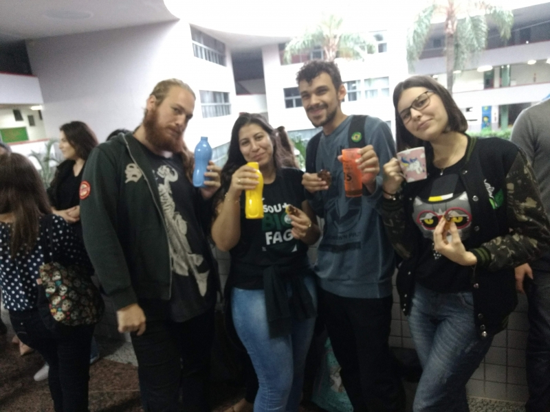 No intervalo das apresentações, os acadêmicos organizaram um café, mas sem copos plásticos