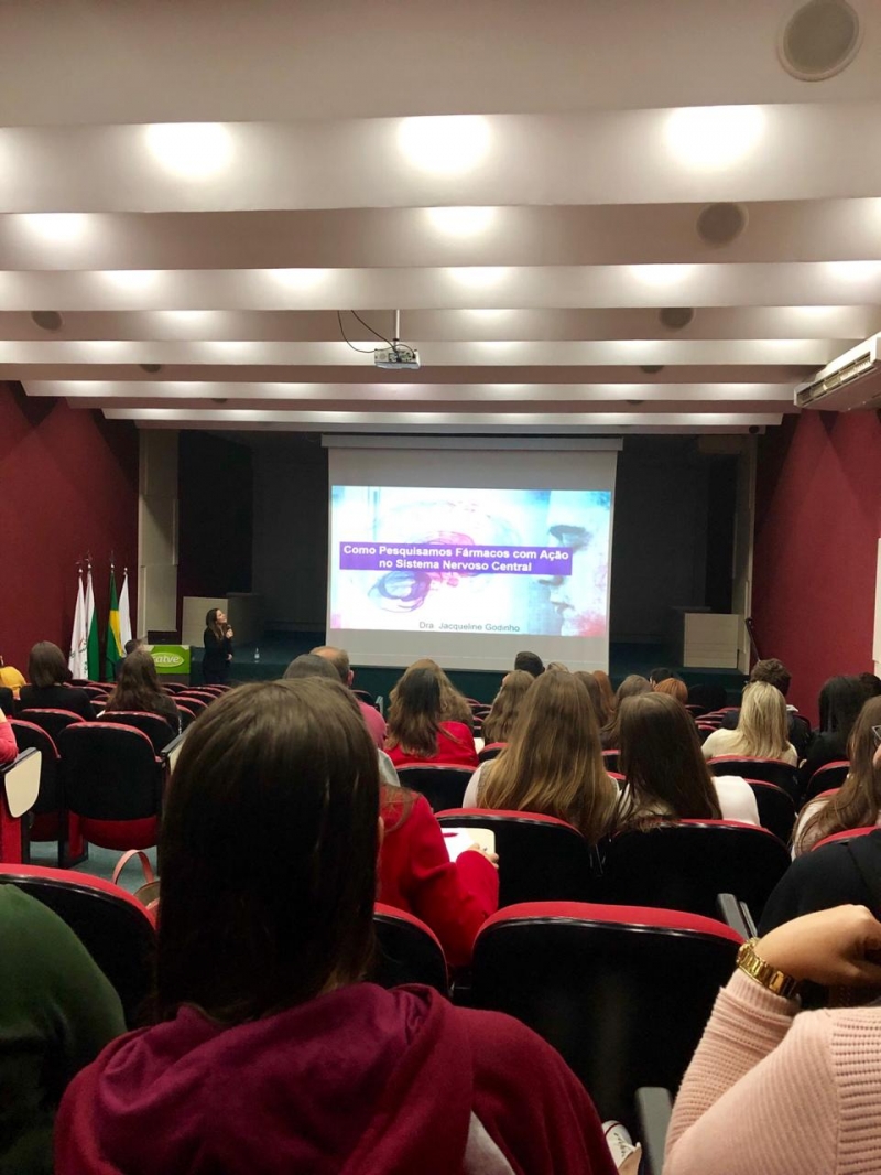 No segundo dia, os acadêmicos acompanharam a palestra com o Dr. Luis Gustavo Pedrono Corrêa, também de Curitiba, com o tema "Serviços farmacêuticos clínicos no componente especializado da assistência farmacêutica do estado do Paraná", e com a egressa, Dra. Jacqueline Godinho, de Maringá, que falou sobre "Como pesquisamos fármacos com ação no sistema nervoso central". "É sempre um prazer retornar à instituição. Minha palestra foi ótima é sempre um prazer retornar à instituição. Foi na FAG que dei meus primeiros passos acadêmicos e é ótimo poder compartilhar o que aprendi. Muitas das coisas que palestro só aconteceram porque eu tive contato com professores do Centro FAG que me influenciaram e acreditaram em mim. E nessa brincadeira acabei fazendo até Pós-Doutorado", relata.