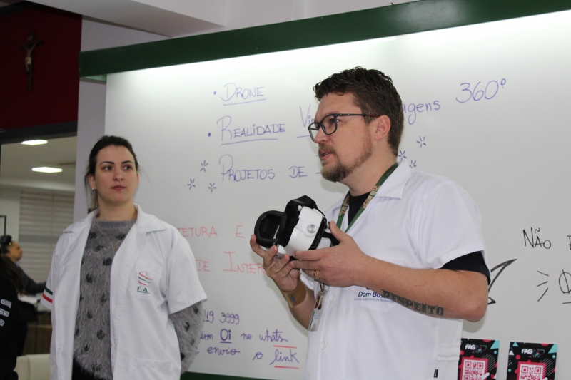Os estudantes tiveram uma imersão no universo das profissões, mas ao melhor estilo "mão na massa". Cada graduação preparou experiências para permitir aos estudantes compreender pontos importantes das carreiras, além de auxiliá-los nas escolhas profissionais. Vanessa Cristina Bortolossi, do Colégio Estadual de Dois Vizinhos está em dúvida em três áreas, entre elas, Psicologia e Design. "A visita ajuda, porque temos contato mais próximo com os cursos. Traz mais clareza em relação ao que a profissão pode oferecer. Achei a estrutura da FAG enorme e impressionante", conta. "É gostoso participar, porque podemos compartilhar com os estudantes como é nossa profissão. É gratificante repassar esse amor que tenho pelo curso", Suellen Seibel, acadêmica de Arquitetura e Urbanismo, que ajudou nas oficinas de drones e de realidade virtual.