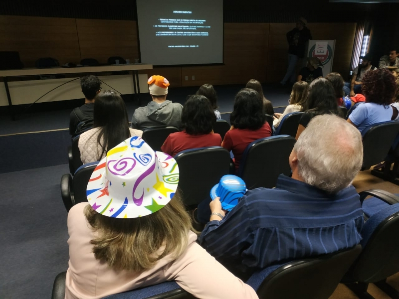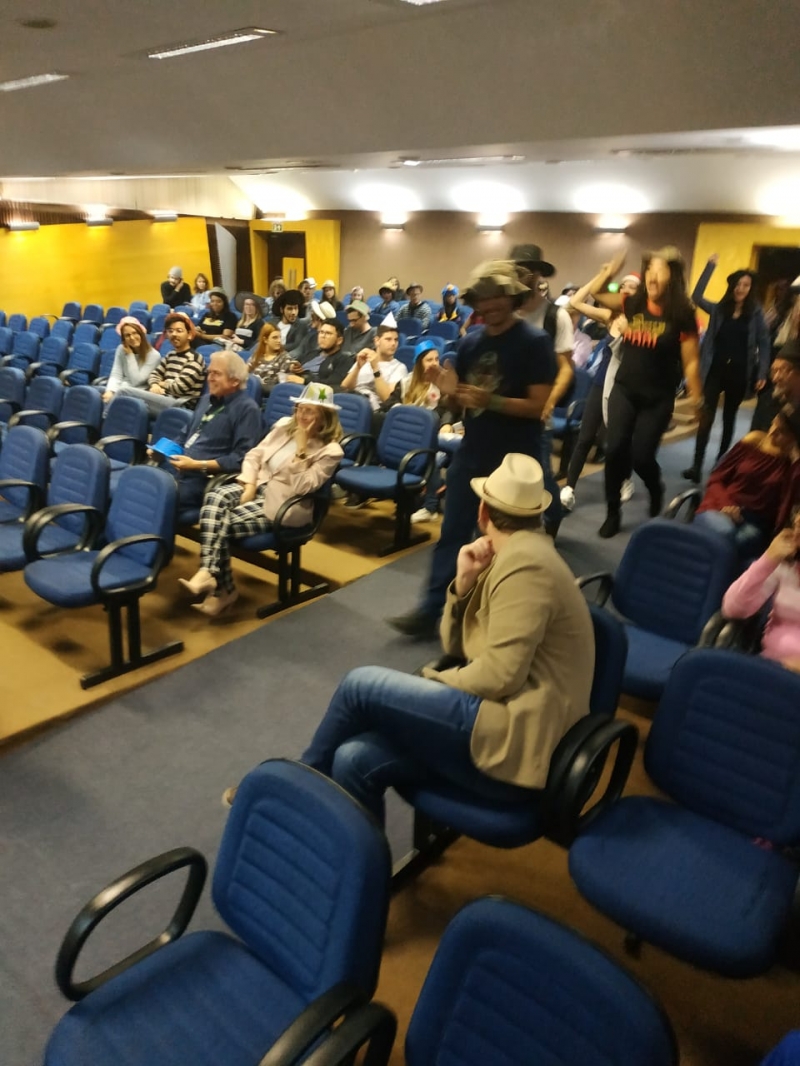 O Comuniquismo 2019 abriu as atividades nesta segunda-feira (27) na FAG Toledo. Antes da palestra com Eduardo Abreu, os acadêmicos do 3º período de Publicidade e Propaganda realizaram uma intervenção, entrando no auditório dizem frases contra a violência contra a mulher. A ação começou na última semana com intervenções e instalação de cartazes nas salas de aula e encerrou com a ação no auditório, encerrada com o clipe da música "Respeita as mina".