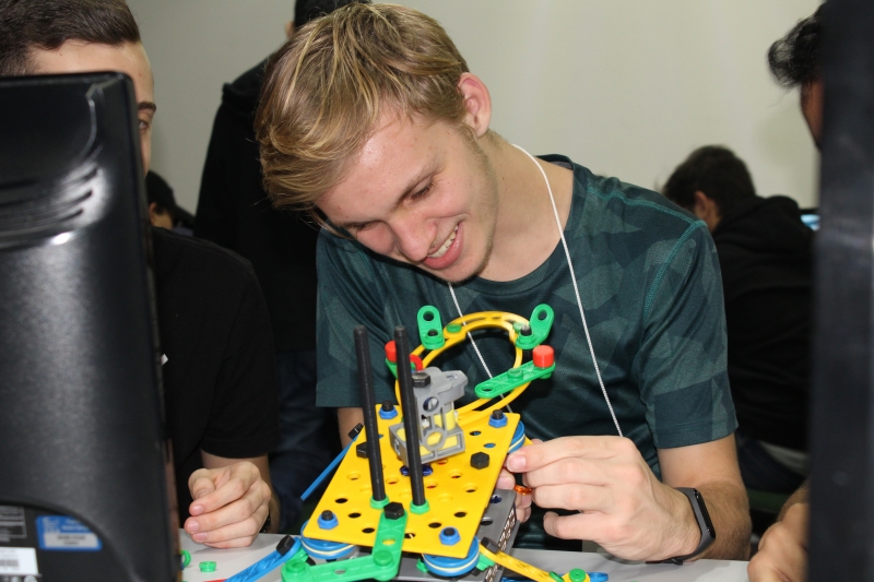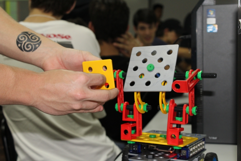 Na primeira noite os estudantes participaram da oficina sobre "Robótica" com o grupo Jocemar e Samuel. Os materiais que estavam à disposição são materiais usados para criar projetos estruturais. O desafio lançando aos acadêmicos foi que eles criassem um animal com motor, em que tiveram que programar o motor para executar uma ação dentro do projeto deles. Para o acadêmico, Saulo Gabriel, a parte mais difícil foi o começo da atividade. "Até a gente decidir o que e como fazer foi o que mais levou tempo. Primeiro tínhamos pensado em criar um morcego e depois mudamos para um gorila, algo mais funcional", conta.