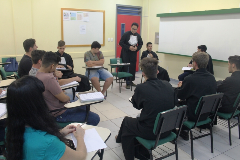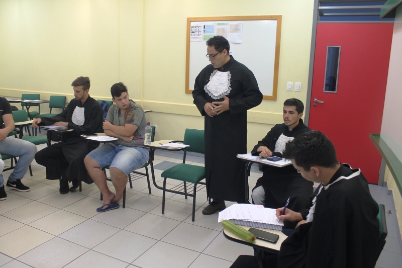 Os acadêmicos do 1º período do curso de Gestão do Agronegócio realizaram uma atividade prática bem diferente das que estão acostumados durante a aula da professora Cleonilda Tonin. A docente propôs a realização de um júri simulado com o tema "Sustentabilidade no Agronegócio". De acordo com a docente, a atividade de metodologia ativa vem com a proposta de trabalhar a retórica e a oratória de forma prática, para que eles possam ser protagonistas na construção de conhecimento em suas áreas de atuação.