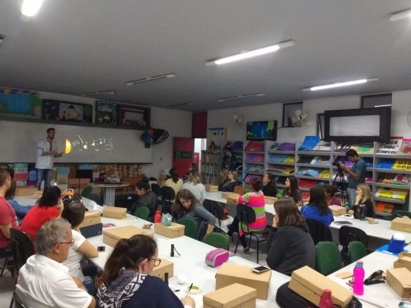 Professores de Ciências da Rede Municipal de Ensino participaram de mais uma formação continuada no Centro Universitário FAG. Desta vez, o tema foi sobre Astronomia. Esta é a 3º oficina oferecida aos professores pelos docentes do Curso de Ciências Biológicas do Campus.
