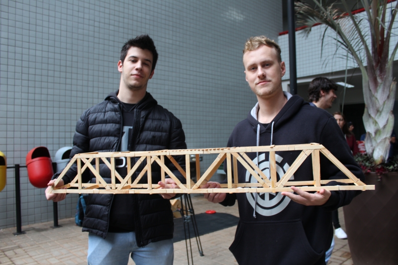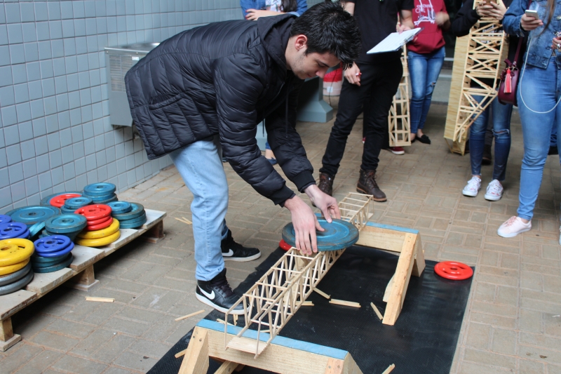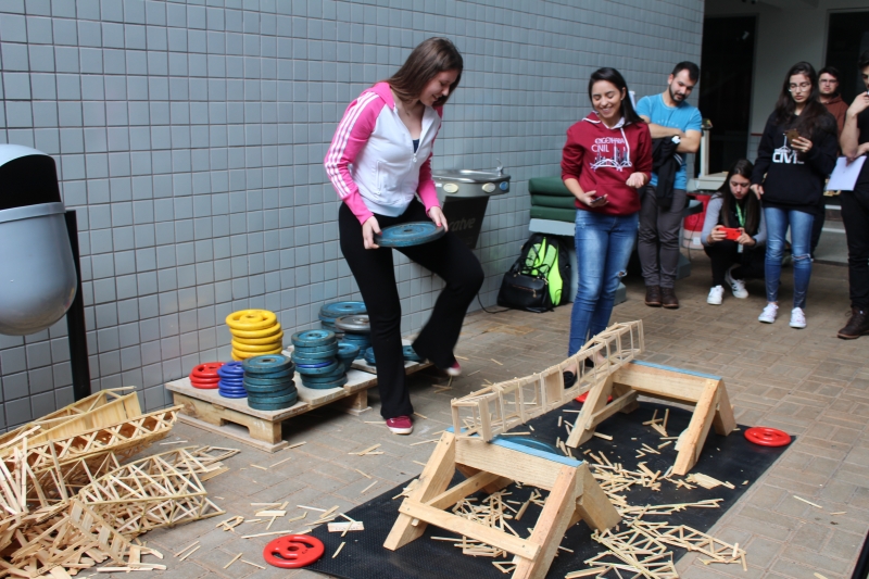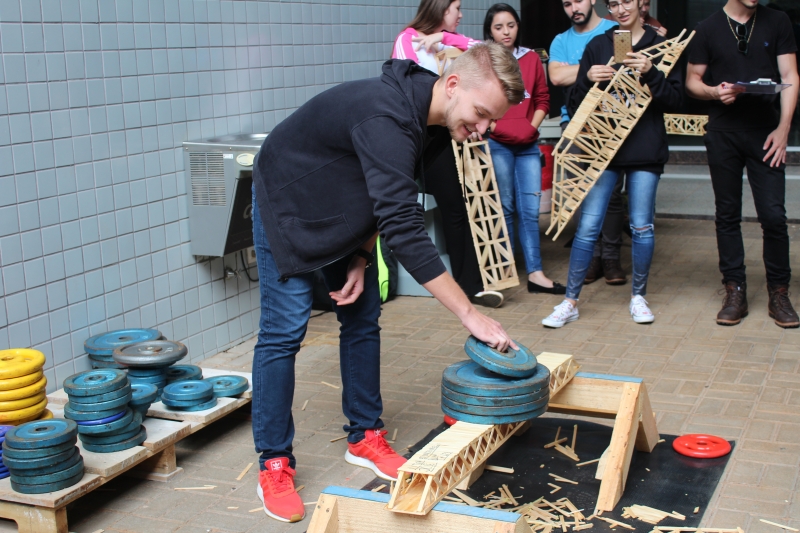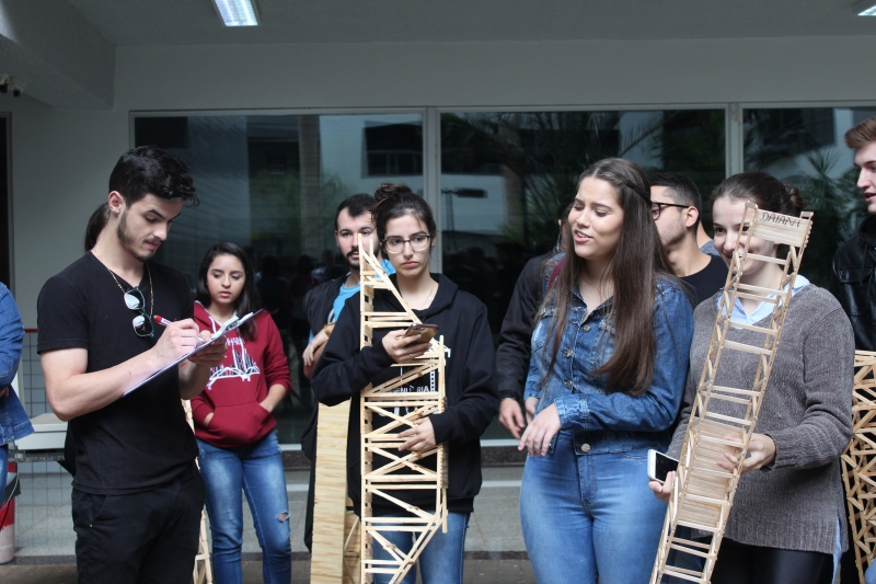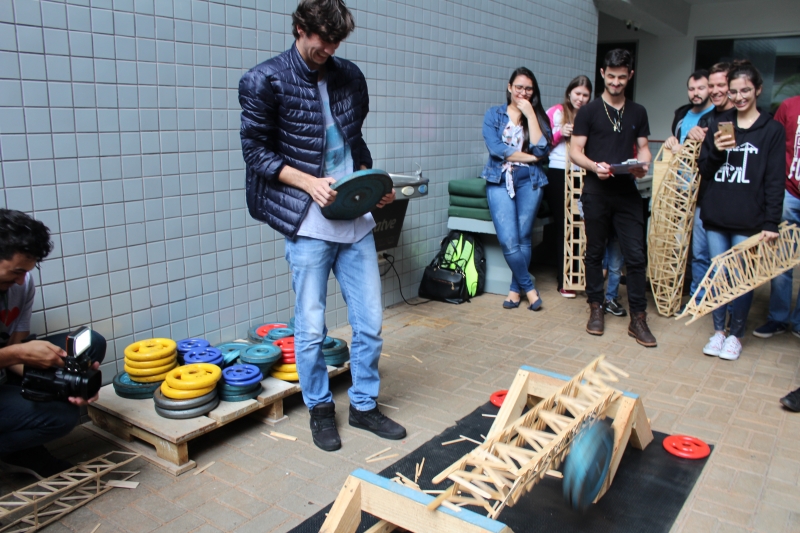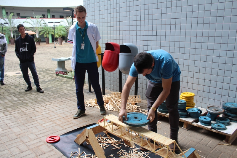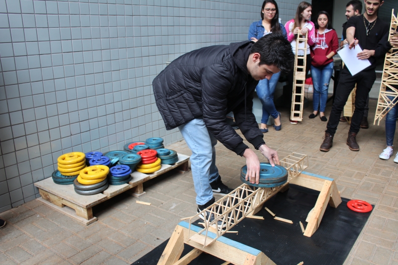 Os estudantes se reuniram no espaço de convivência do Bloco 03 e cada grupo foi avaliado a partir dos pesos que a ponte suportava, que variaram entre 10 e 187 kg. A ponte do grupo do acadêmico, Rodrigo Pauletto, suportou o peso máximo e foi a vencedora. "Montamos a nossa ponte em 45 dias. Demos bastante intervalo para secagem, fizemos com bastante calma. Até 150 quilos eu esperava, foi melhor que eu esperava. Foi um grande incentivo para aprendermos sobre questões estruturais", relata.