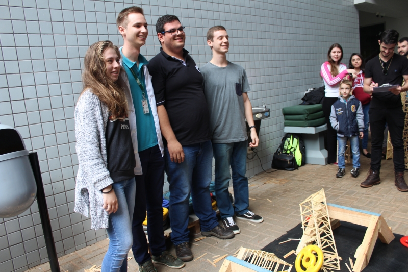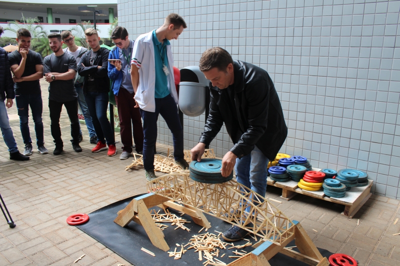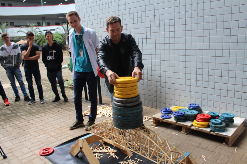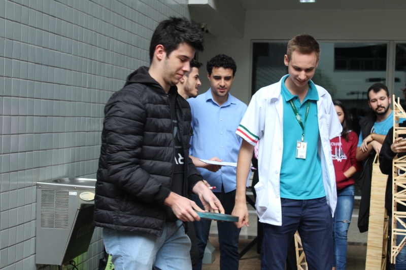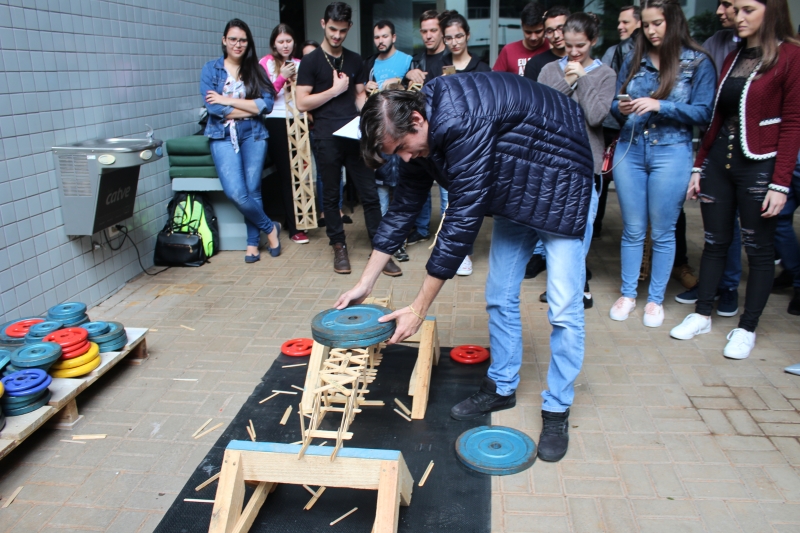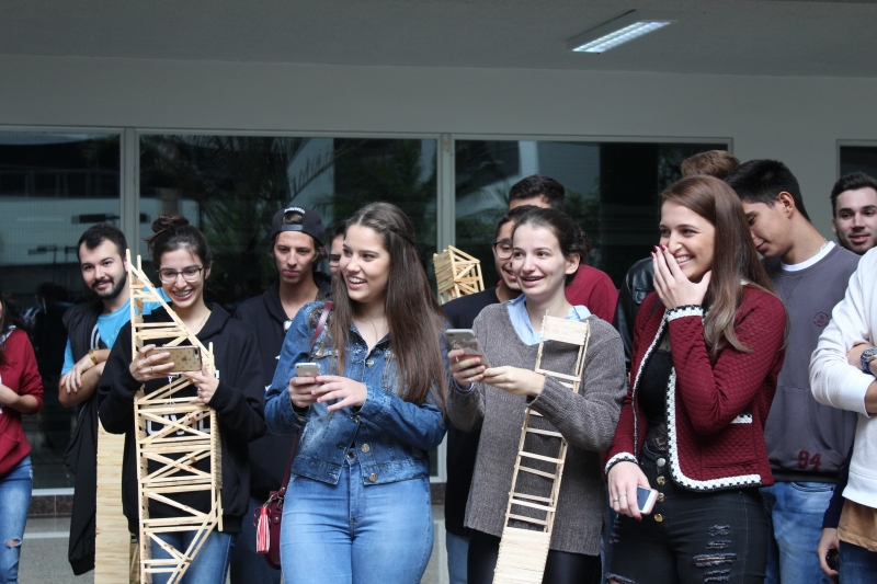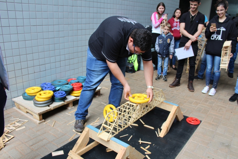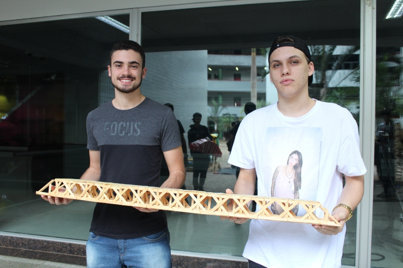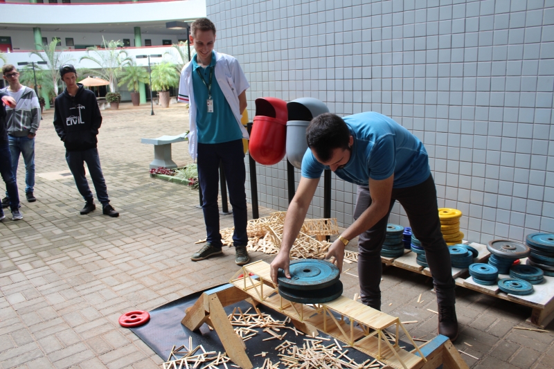 Os estudantes se reuniram no espaço de convivência do Bloco 03 e cada grupo foi avaliado a partir dos pesos que a ponte suportava, que variaram entre 10 e 187 kg. A ponte do grupo do acadêmico, Rodrigo Pauletto, suportou o peso máximo e foi a vencedora. "Montamos a nossa ponte em 45 dias. Demos bastante intervalo para secagem, fizemos com bastante calma. Até 150 quilos eu esperava, foi melhor que eu esperava. Foi um grande incentivo para aprendermos sobre questões estruturais", relata.