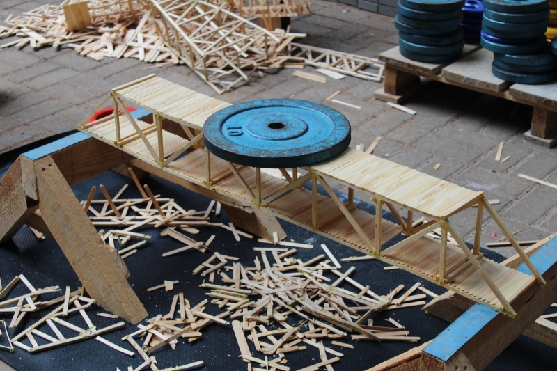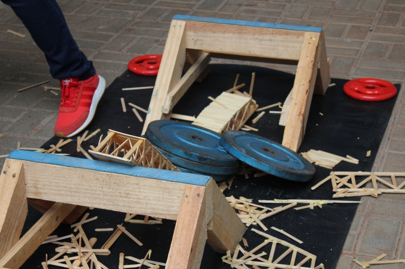 Engenharia Civil: em Desafio, ponte de palitos desenvolvida por acadêmicos suporta 187 quilos