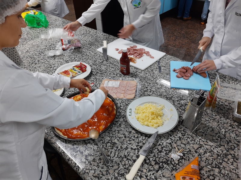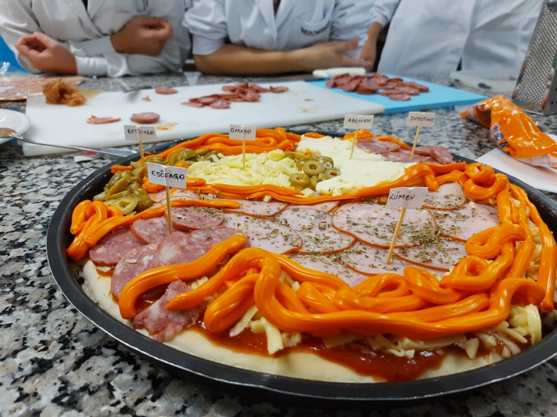 Acadêmicos usaram diferentes ingredientes consumidos na pizza para explicar os processos digestivos