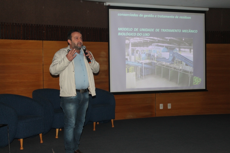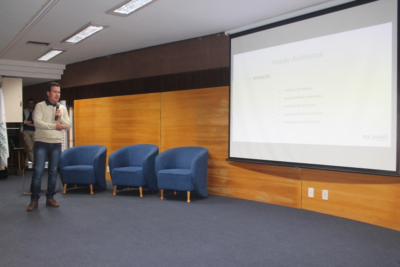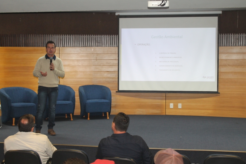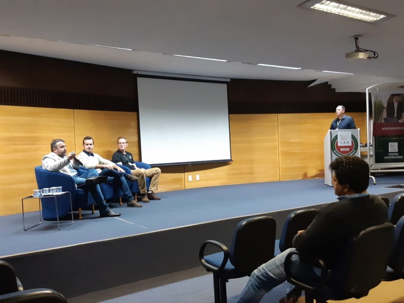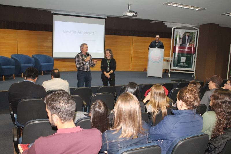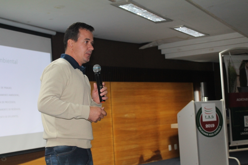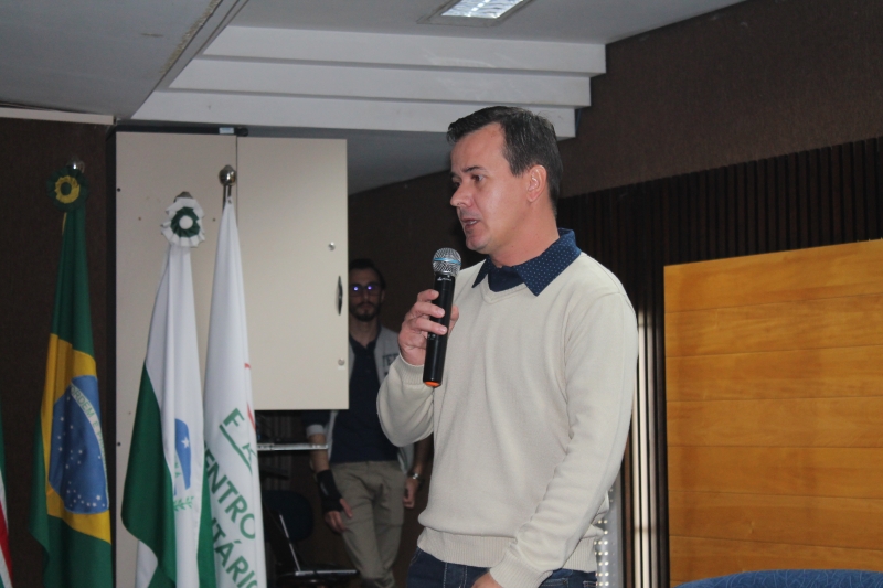 O curso de Gestão do Agronegócio realizou na noite desta terça-feira (4) o 1º Agroambiental. O evento organizado pelos acadêmicos do 3º período do curso trouxe como tema o manejo de resíduos nas áreas rurais e urbanas. O fiscal da Adapar Anderson Lemiska foi um dos palestrantes convidados. Na mesa redonda ele explanou sobre a temática na companhia do secretário de Meio Ambiente Neudi Mosconi e do gestor da área de resíduos da indústria farmacêutica Prati Donaduzzi. "Foi muito importante esta discussão porque nós conseguimos englobar de vários ângulos, ou seja, no setor privado, público e do ponto de vista da área de fiscalização, como se dá a gestão de resíduos em Toledo", relata o professor João Remella que coordenou os trabalhos.