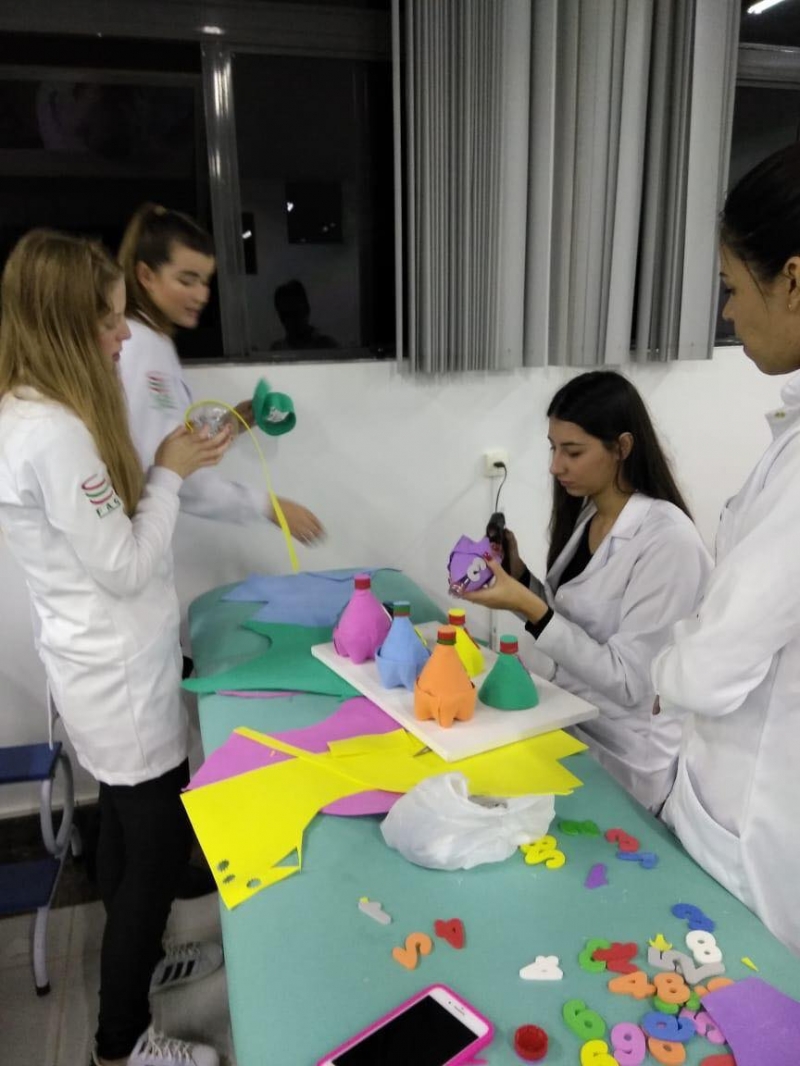 Entre as propostas apresentadas, estão: twister, futebol de mesa e jogo de encaixe. Os brinquedos foram entregues para os pacientes atraso no desenvolvimento que fazem tratamento nas Clínicas FAG e que precisam de estímulo para sua evolução. "A intenção foi de que os alunos confeccionassem um brinquedo para estimular a lateralidade, noção espacial e temporal, coordenação motora fina e grossa e o desenvolvimento motor e cognitivo", esclarece Tatiana.