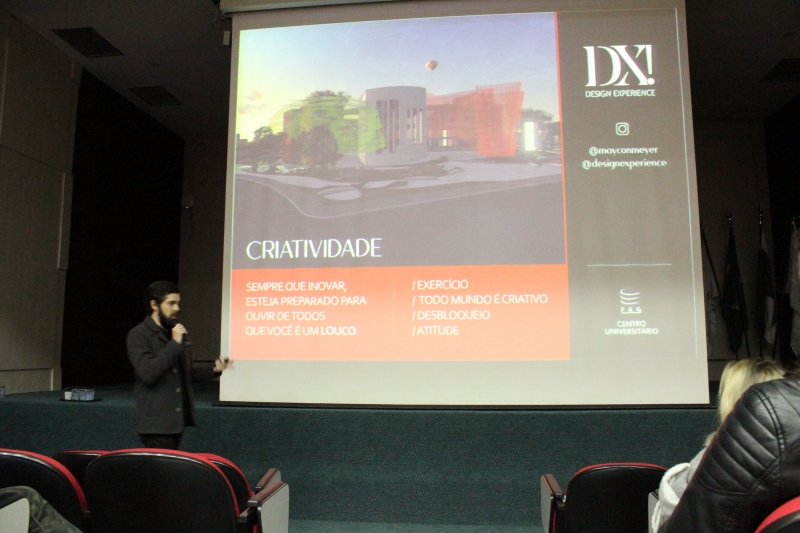 Acadêmicos do curso de Design de Interiores da Faculdade Dom Bosco e profissionais da área participaram da palestra com o arquiteto, Maycon Meyer. Meyer é também fotógrafo e especialista na área de Marketing para Arquitetura. Ele falou sobre como usar ferramentas de para encantar cliente na era da experiência. O evento foi realizado no Auditório do Bloco IV e organizado pela professora e coordenadora do curso, Marieli Gurgacz Moreira.