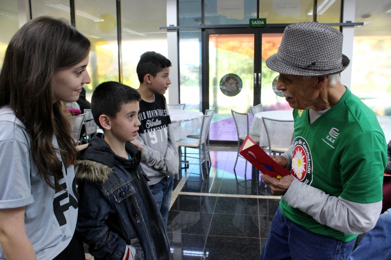 Respeito, carinho e alegria foram princípios que marcaram nos dias 05 e 07 de Junho os encontros intergeracionais realizados entre as crianças e adolescentes do Serviço de Convivência e Fortalecimento de Vínculos do Centro de Referência da Assistência Social (CRAS), situado no bairro XIV de Novembro, e os idosos do Centro de Convivência Nair Ventorin Gurgacz, da Fundação Assis Gurgacz.