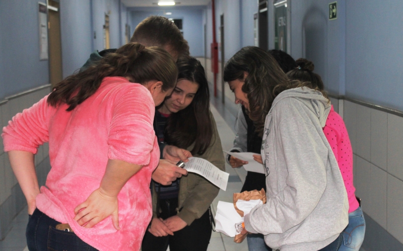 Estudantes de Letras Língua Portuguesa e Libras correram por toda a instituição atrás de pistas para encontrar o prêmio