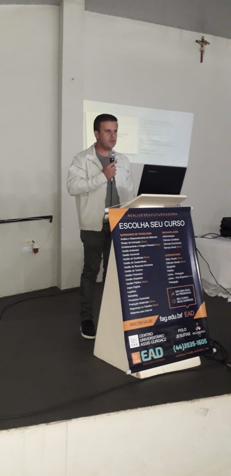 O Centro Universitário FAG lançou mais um polo da Educação a Distância. Dessa vez foi o Munícipio de Jesuítas receber a instituição. O evento contou com a presença do empresário, Ronivaldo Guarnieri; do Prefeito, Junior Weiller, do Vice-prefeito, Edicarlos de Oliveira; do Presidente da Associação Comercial, Ricardo Ferreira, do Diretor da FAG, professor Cleber Fagundes Ramos e do professor Luciano Munerato.