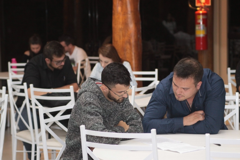 Logo depois de acompanhar a apresentação e entrega de premiação dos TCCs, os 42 alunos presentes do curso de Agronomia do Centro Universitário FAG, participaram de uma prova referente à disciplina de Ética e Legislação Profissional, acompanhados pelas professoras Ana Paula Mourão Simonetti e Ellen Toews Doll Hojo. As provas foram a aplicadas em dupla no novo salão de eventos da AREAC.