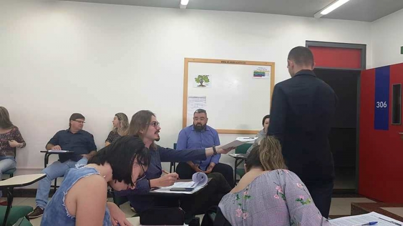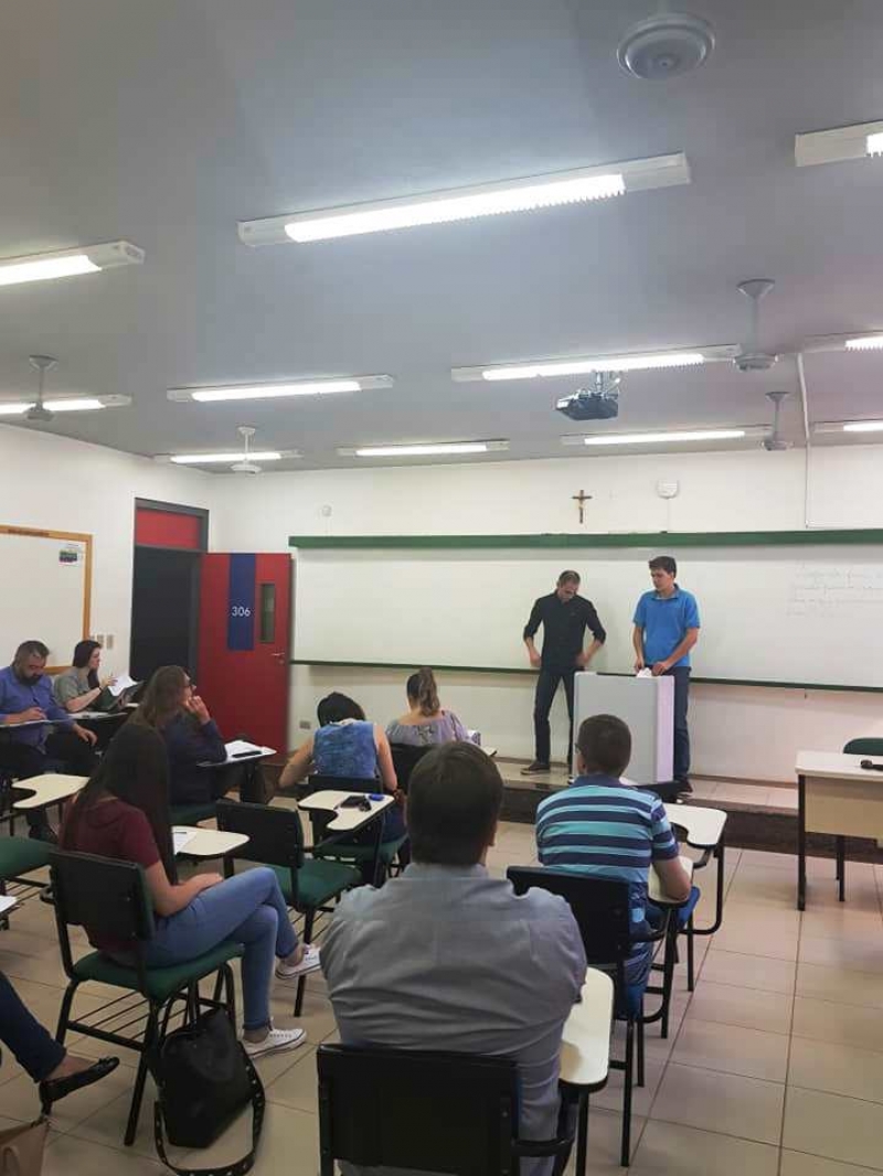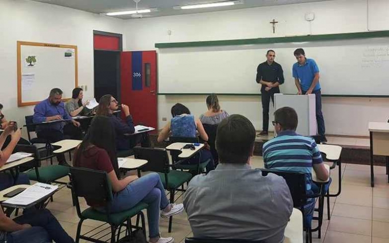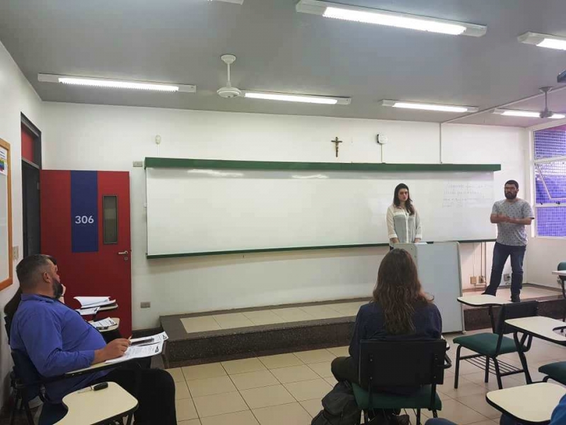 O curso de Direito da FAG Toledo realiza esta semana o Seminário de Práticas Jurídicas com os acadêmicos do curso. O Seminário é uma etapa para a aprovação no estágio supervisionado que o acadêmico realiza no Núcleo de Práticas Jurídicas (NPJ). Ao final do semestre os alunos expõem para a comunidade acadêmica os casos mais desafiadores para eles dentro do NPJ. A apresentação é feita para uma banca formada pelo professor Marco Antonio Batistella, coordenador do NPJ e pelo professor Ivo Henrique Bairros. A banca avalia a postura da apresentação do aluno, a capacidade de se expressar oralmente e de responder à arguição sobre os casos. "Aprende-se mais e aprende-se melhor com a vivência das regras de Direito teorizadas em sala de aula. A experiência prática tem uma qualidade que é a possibilidade de criar conexões, desenvolver a empatia, humanizar o olhar", comenta a coordenadora de Direito Camila Milazzotto Ricci.