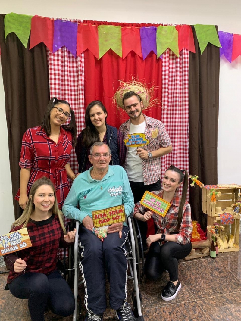 A festa contou com dança, comidas típicas e brincadeiras. "A festa aconteceu com o objetivo de promover uma interação com pacientes, buscando motivação, alegria e entretenimento com alunos que os atenderam durante todo o semestre. Promovemos essa interação com os alunos, saindo da rotina de procedimentos para um ambiente mais agradável e divertido", esclarece a professora.