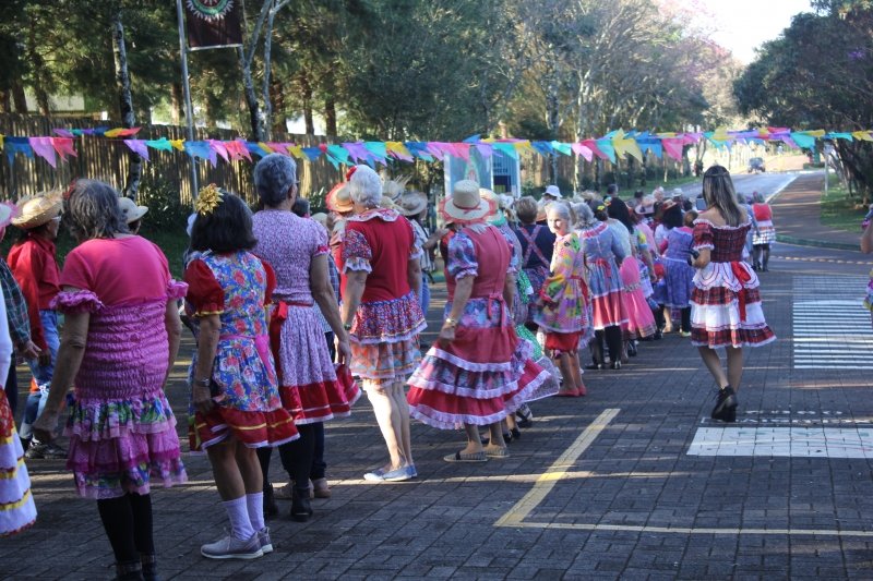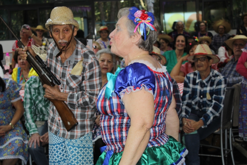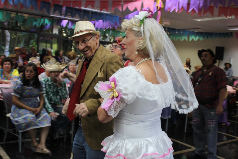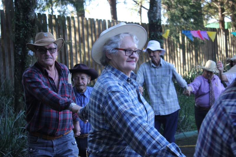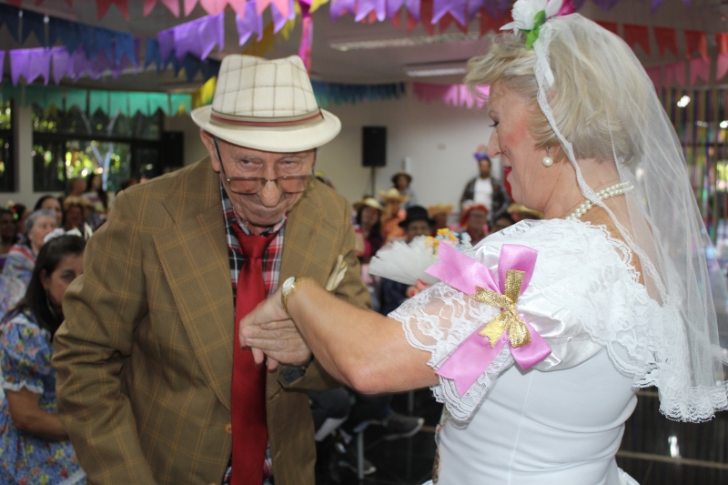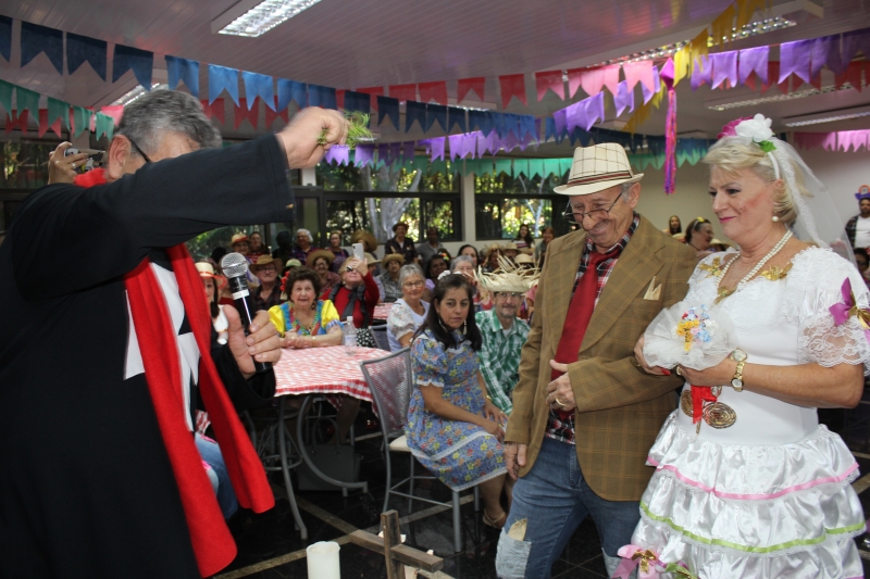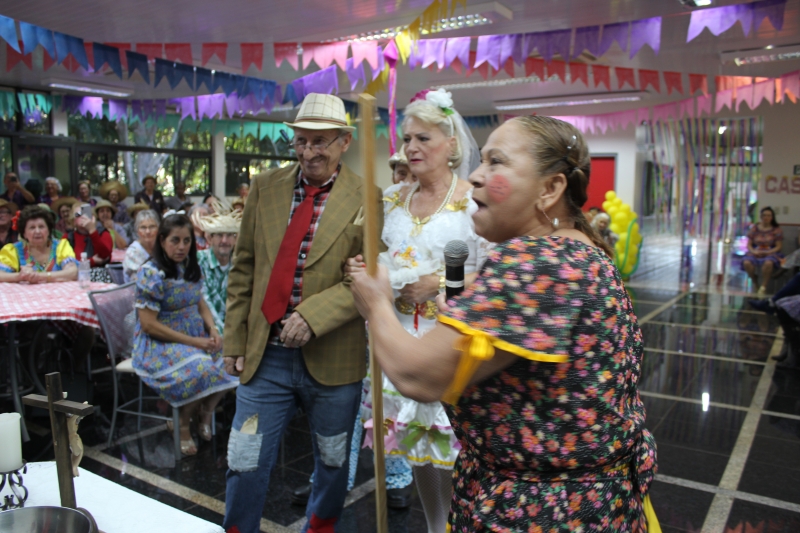 O Centro de Convivência Nair Ventorin Gurgacz comemorou nesta última sexta-feira (28) o encerramento do semestre dos alunos da terceira idade. O evento, que é tradicional, contou com uma peça teatral de um casamento caipira, que arrancou risadas do público. Teve ainda quadrilha, muita comida típica e bailão. .
