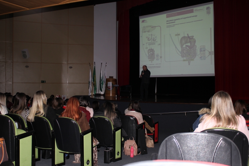 No período da manhã foi trabalhado o embasamento científico para os métodos de manejo através da dieta para o intestino como órgão endócrino. "São as bases fisiológicas, microbiológicas, as bases imunológicas do intestino para que possamos trabalhar a intervenção nutracêutica e como o manejo da dieta propriamente dita pode otimizar essa função do intestino como órgão endócrino", explica Murilo.