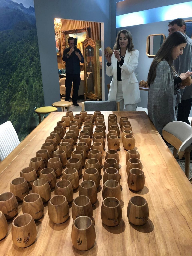 Os móveis da marca são feitos em madeira Uva do Japão, considerada uma espécie invasiva no ecossistema, o que garante o caráter sustentável do mobiliário.