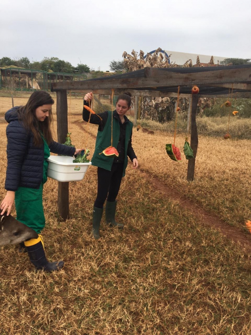 Nicholas Sanzovo e Fabiana realizaram um estágio no Zoológico da Unisep (União de Ensino do Sudoeste do Paraná)