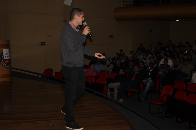 Gabriel Caus fala sobre habilidades comportamentais aos acadêmicos.