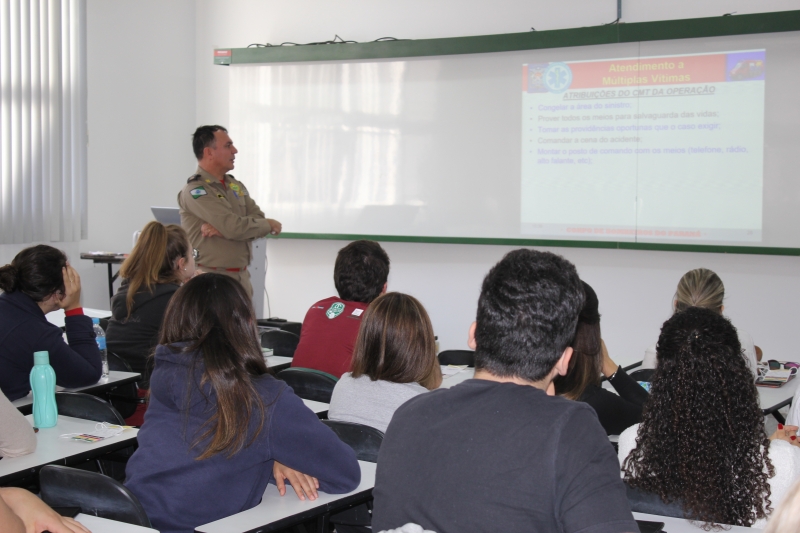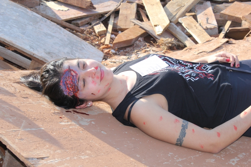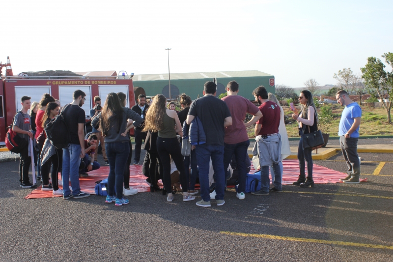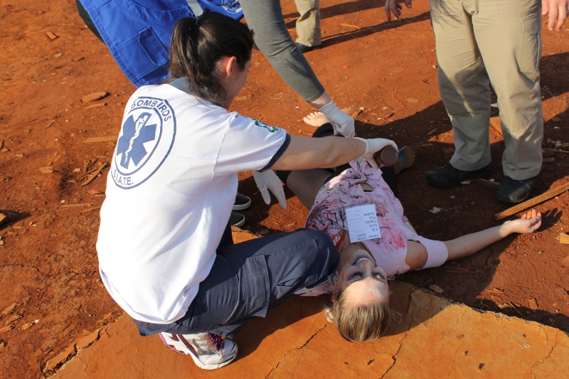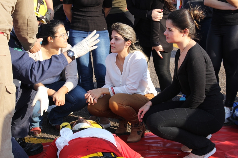 A situação fictícia era de uma explosão em um canteiro de obras. "A princípio, 8 pessoas ficaram feridas, porém, populares entraram na área, se feriram e o número subiu 10. Foi possível visualizar a triagem para os atendimentos em diferentes graus de gravidade: ferimentos leves (verde), moderados (amarelo) e graves (vermelho). Além disso, entendemos o protocolo quando é constatado que a vítima está sem vida", explica a acadêmica de Medicina, Maressa Bonissoni.