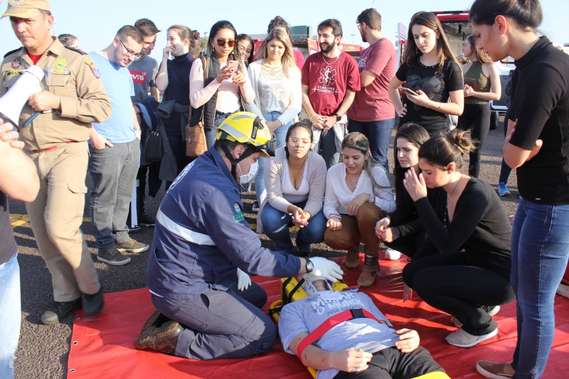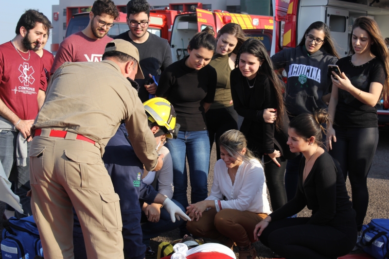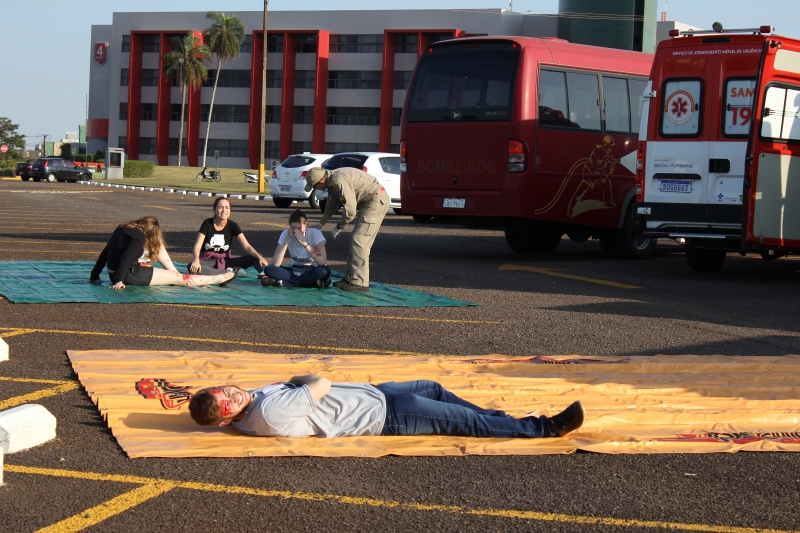 Sirenes, fogo, explosão, mortos e feridos. O cenário de tragédia serviu de aprendizado para os participantes do III Comuopar - Internacional (Congresso Médico Universitário do Oeste do Paraná), que teve início ontem (15). Com ajuda de acadêmicos de Medicina do Centro Universitário FAG, o Corpo de Bombeiros realizou uma simulação de atendimento de emergência pré-hospitalar.