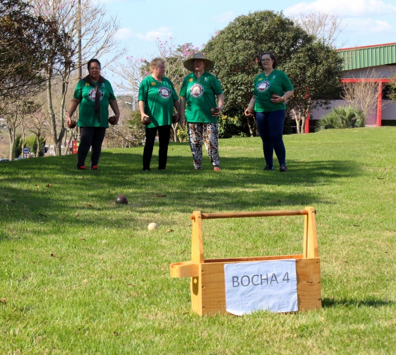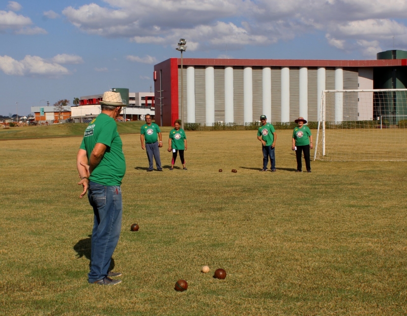Os idosos iniciaram o semestre com agitação, após o canto participaram de um campeonato de bocha campeira, realizado no campo. O torneio teve como objetivo a integração e a prática de exercícios de forma lúdica,possibilitando essa modalidade esportiva de fácil acesso a todos,como incentivo para a melhoria da saúde e igualmente proporcionando inúmeras atividades benéficas para os mesmos, como caminhada e o desenvolvimento mental e força.