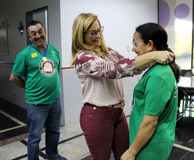 A coordenadora Profª Salte Chrun entregou a premiação para as duplas do 1º ao 4º lugar, que teve como vencedores: