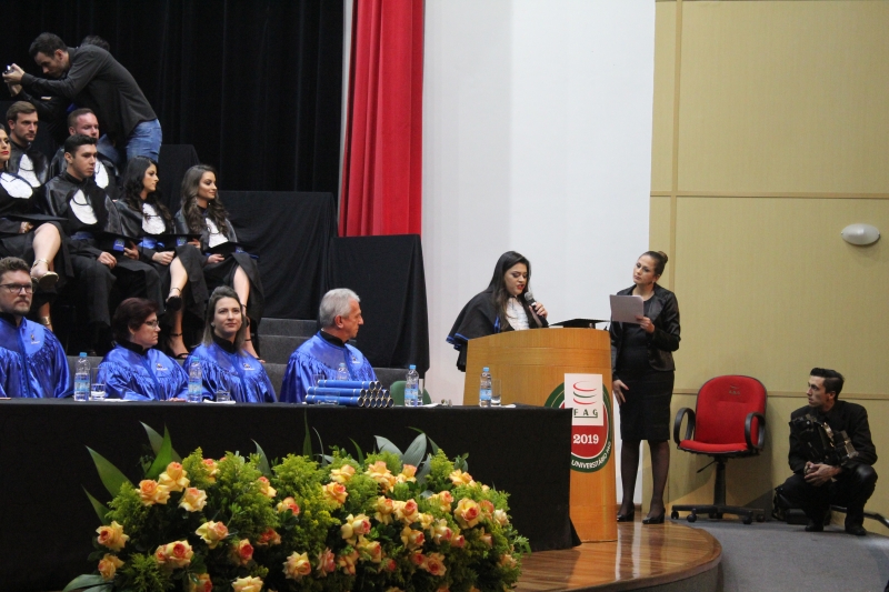 A solenidade foi presidida pelo pró-reitor acadêmico e diretor da Faculdade Dom Bosco, Afonso Cavalheiro Neto. Os formandos de Agronomia escolheram como Paraninfo o professor Jorge Alberto Gheller e como Patrono o professor Luiz Antônio Zanão Junior. O "Nome de Turma" foi o professor Cornélio Primieri. O Paraninfo do curso de Design de Interiores foi Vinicius Fontana Fidelis dos Santos, como Patrono a turma escolheu Izan Gomes de Lacerda, e coube a Camila Pezzini a honra de ser "Nome de Turma". A Professora Homenageada como "Nome de Turma" e Patronesse, dos Cursos de Tecnologia em Gestão Financeira e Recursos Humanos, foi a professora Vandete Maria Sonego.