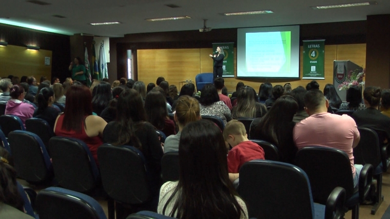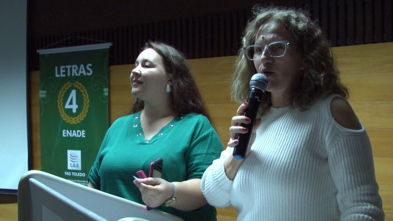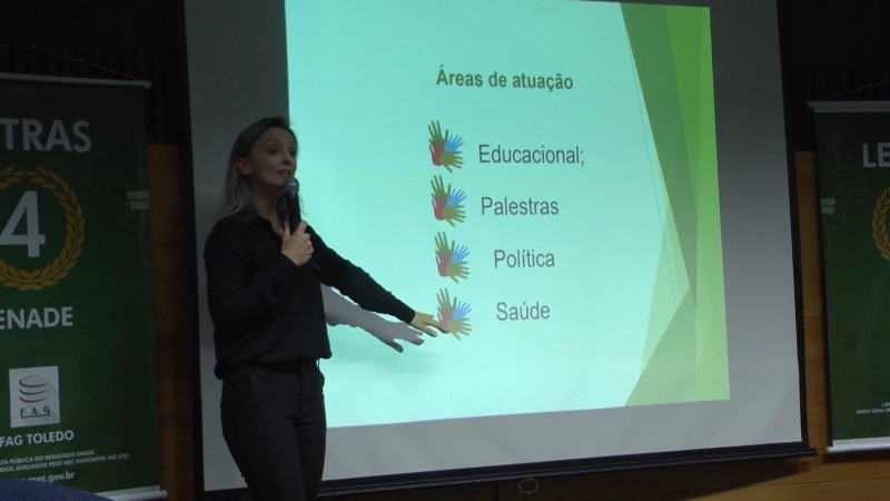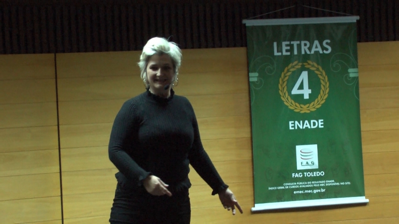 O curso de Letras Língua Portuguesa e LIBRAS da FAG Toledo abriu na noite desta quarta-feira (21) a 8ª Jornada Acadêmica de Letras e LIBRAS no auditório da instituição. O Evento contou com a participação da contadora de histórias Magda Ritter. "Trabalhei algumas técnicas de contação de história, com foco em uma história de uma criança com deficiência auditiva. É uma forma de conscientizar sobre a importância da inclusão e como este processo de contar histórias pode ser importante e contribuir com isto", relata. As professoras Débora Michela Prediger e Denise Franciele Dumke falaram sobre ?A profissão de TILs". "É uma área com muitas possibilidades de atuação, eu trabalho os três períodos e sei que existe muito campo para ser explorado, sem falar da satisfação em trabalhar com um processo que integra as pessoas, diminui as distancias na comunicação", relata Denise. Na sequência a professora Gisele Minizzo trabalhou com o tema "A atuação do professor de Libras". "É uma profissão em ascensão porque não está mais apenas no âmbito escolar. As empresas, a sociedade está mais preocupada e interessada em incluir o surdo e consequentemente o profissional que atua com a Libras está presente neste contexto", analisa. Para a coordenadora do curso de Língua Portuguesa e Libras da FAG Toledo, Janice Salvador, o curso tem promovido importantes conquistas para os profissionais que passaram pela universidade e também para os acadêmicos em formação. "É o único curso presencial da Região e sempre buscamos trabalhar de forma muito ampla a formação, para que este aluno saia qualificado para fazer a diferença", comenta. Nesta quinta-feira estão previstas as oficinas pedagógicas com várias temáticas: Práticas para a Educação Inclusiva; Letra e Música, um acorde que pode dar certo; O uso da tecnologia no processo de ensino e Estratégias voltadas ao ensino de LIBRAS. No dia 23, além de apresentações culturais, a jornada encerrará com a palestra "A formação do profissional egresso do curso de Letras Língua Portuguesa e LIBRAS e Estratégias Metodológicas de Libras com L2".