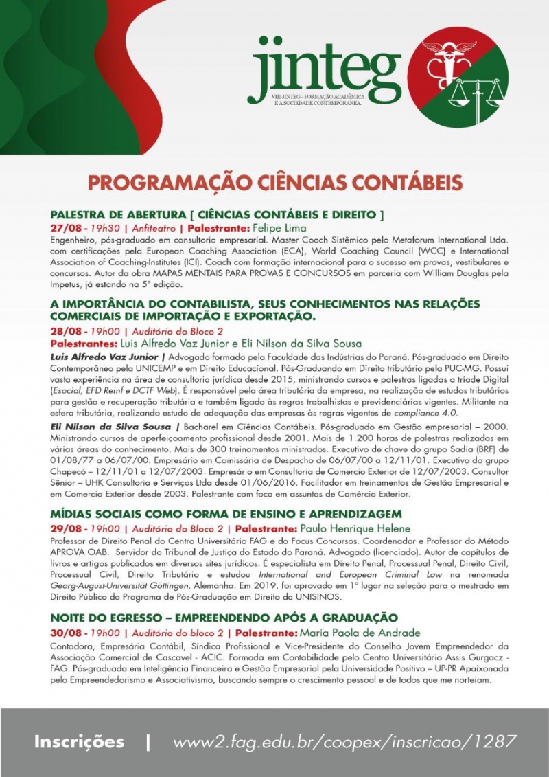 JINTEG: Jornada Integrada de Contábeis e Direito começa na próxima terça-feira (27)